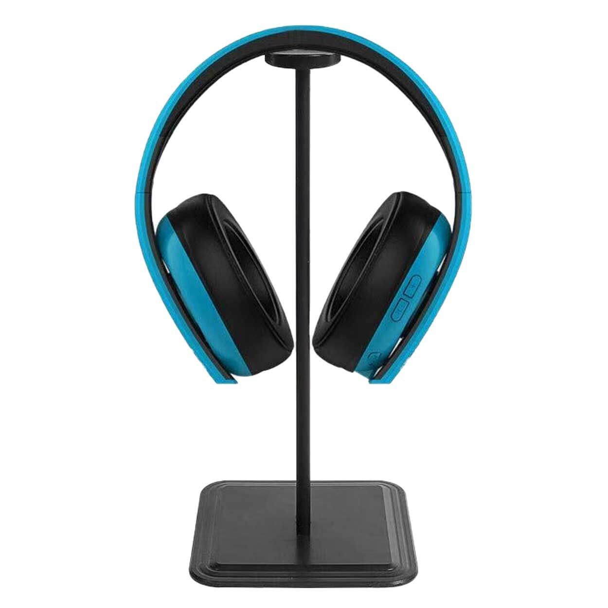 Hörlursstativ för skrivbord som ger en fast plats för headset och hörlurar när de inte används. Stativet kan stå fritt eller monteras för extra stabilitet med en självhäftande fästyta, utan skruvar. Den lätta plastkonstruktionen gör det enkelt att flytta och placera där det passar bäst, samtidigt som hörlurarna hålls upphängda och lättåtkomliga. För bästa fäste vid montering rengörs ytan innan stativet trycks fast.