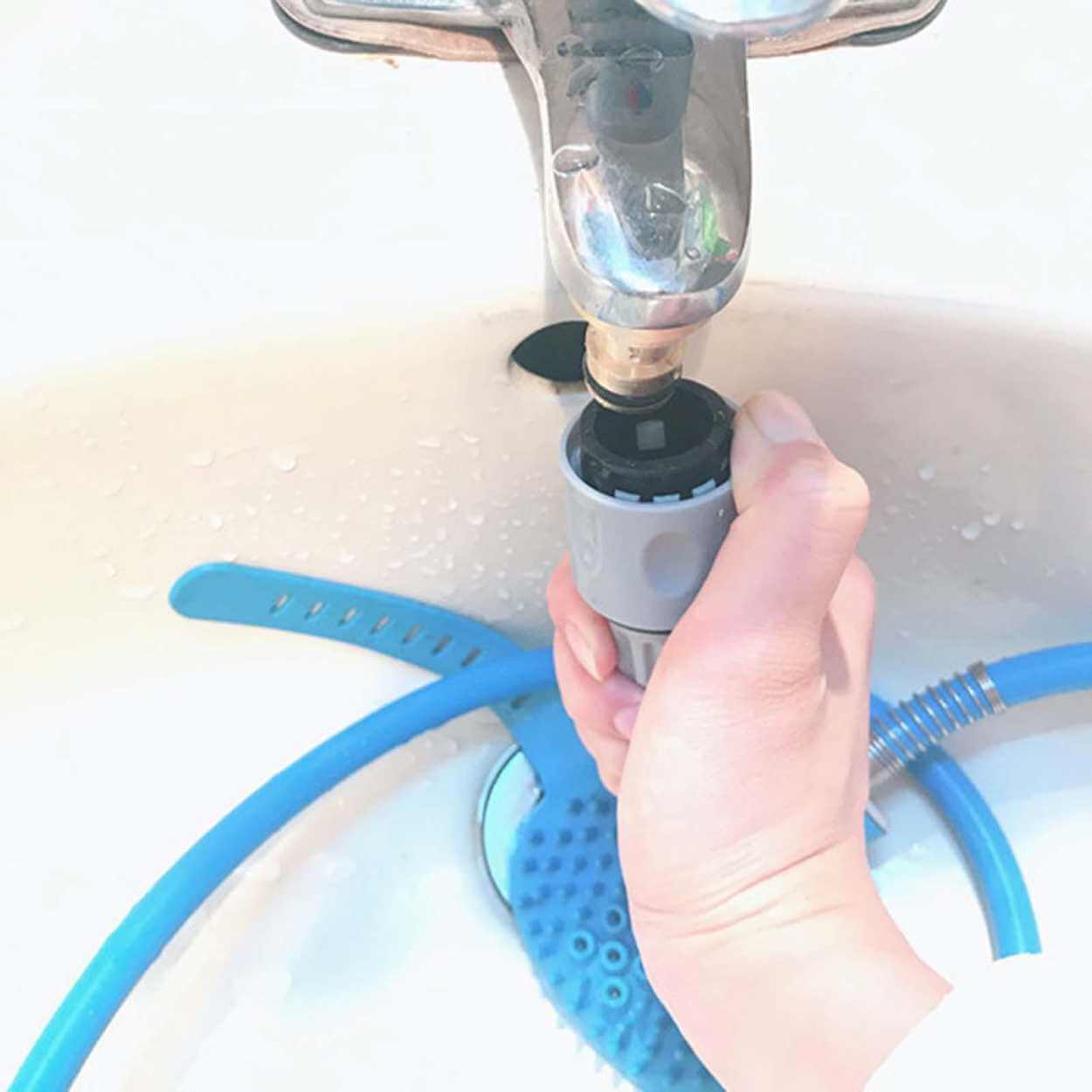 Duschhandske för hund som gör badet enklare och mer kontrollerat. Handsken kombinerar tvätt, massage och schamponering i samma moment, där vattenflödet leds genom handsken samtidigt som silikonkamens piggar hjälper till att arbeta in schampo och lösa smuts i pälsen. Vattenmängden kan justeras direkt på handsken, vilket underlättar vid tvätt av huvud och andra känsliga områden. Justerbar rem ger en säker passform som sitter kvar under användning. Levereras med slang på cirka 2,5 m samt kranadaptrar för bred krankompatibilitet.