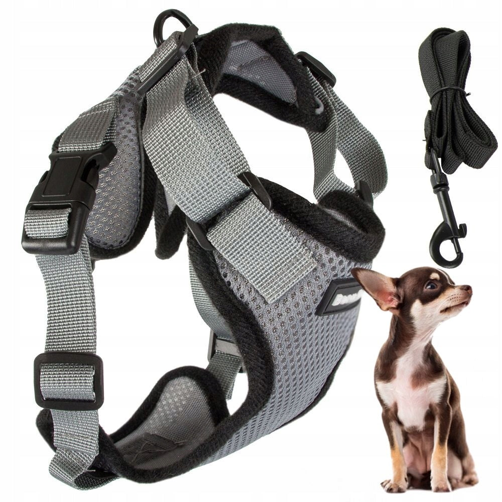 Tryckfri hundsele för små hundar som ger stabil passform utan att belasta hals eller bröst. Mjuk svampvaddering minskar risken för skav, och det andningsbara materialet hjälper huden att hålla sig bekväm under promenader och lugn träning. Reflexdetaljer på sele och avtagbart koppel förbättrar synligheten i mörker. Handtaget på ryggen gör det enkelt att snabbt hålla in hunden vid behov. Kopplet fästs med en säker metallkarbin och kan tas av när det passar bättre.