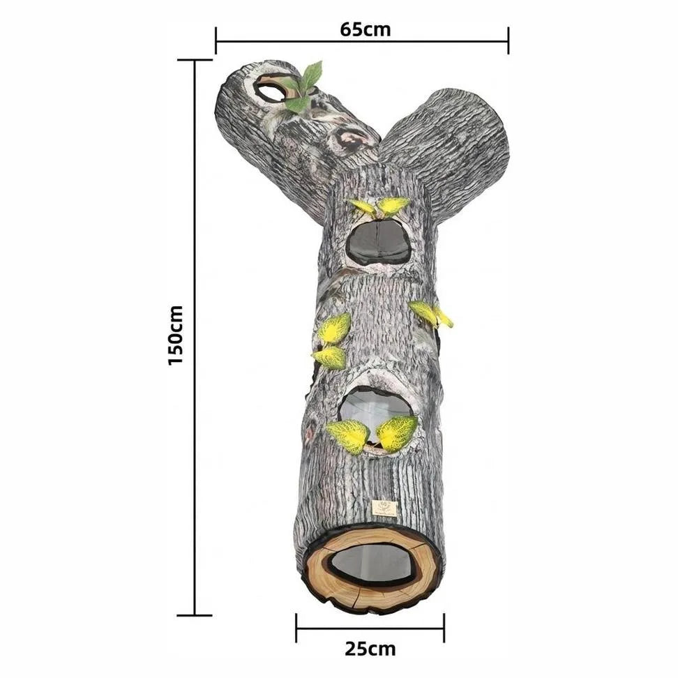 Hopfällbar kattunnel som ger katten en tydlig plats för utforskande, smygande och jaktlek. Flera öppningar gör leken mer varierad och passar både soloaktivering och interaktiv lek. Tunneln viks ihop när den inte används, vilket gör den enkel att ställa undan i hemmet. Tillverkad i slitstark polyester som är praktisk i vardagen och kan maskintvättas vid behov. Lämplig för inomhuslek och fungerar även som gömställe när katten vill dra sig undan en stund.