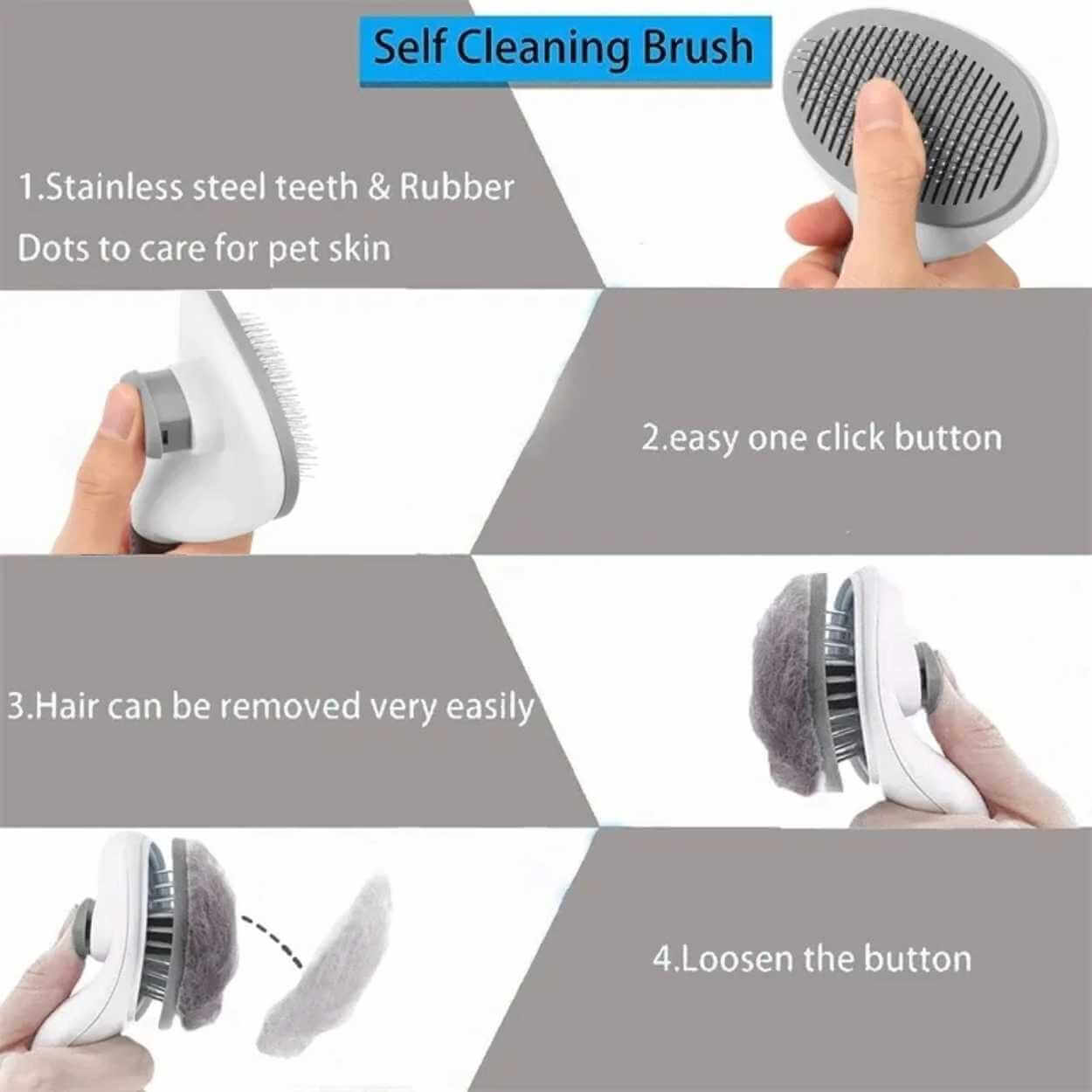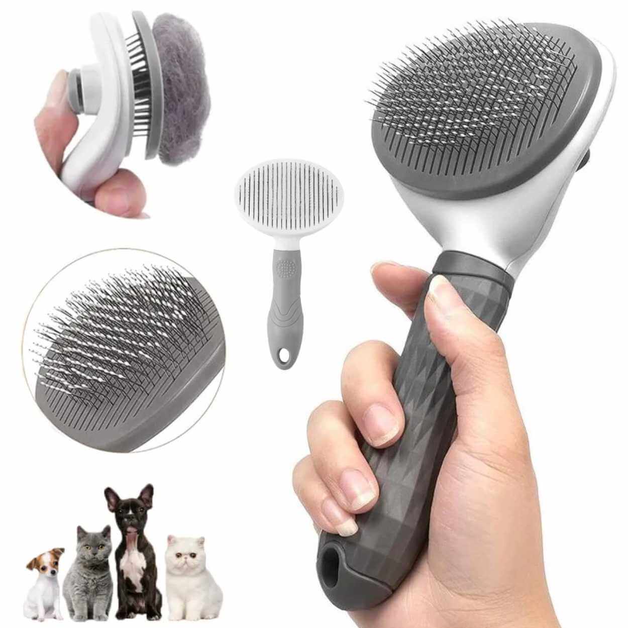 Självrengörande pälsborste för hund och katt som gör pälsvård snabbare och enklare. Borsten tar bort lös päls, smuts och mindre tovor samtidigt som borstningen känns behaglig för djuret. Med ett klick på knappen frigörs den uppsamlade pälsen från stiften, så rengöringen går snabbt mellan dragen och efter avslutad borstning. Konstruktionen kombinerar ett stabilt grepp i ABS och TPR med stift i rostfritt stål för effektiv utredning. Passar både kort och lång päls vid regelbunden användning.
