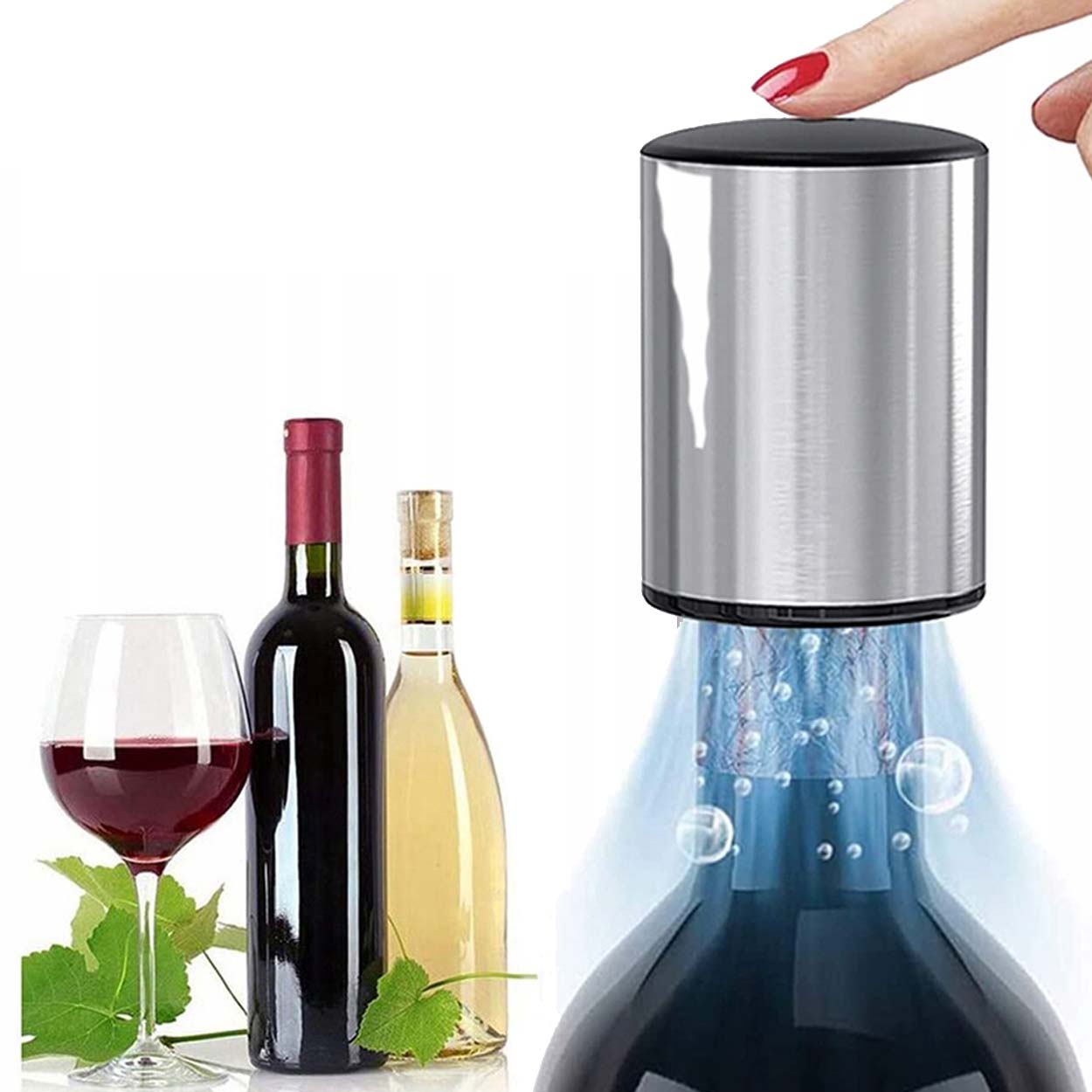Vakuumkork som försluter öppnade flaskor och minskar luftkontakt, vilket hjälper till att bevara smak och arom längre. Konstruktionen är anpassad för vin och mousserande drycker och ger en tät förslutning efter servering. Den runda toppen ger ett stabilt grepp vid påsättning och borttagning. Tillverkad i tålig ABS-plast för frekvent användning i hemmet eller i miljöer som bar, restaurang och café. Ett praktiskt tillbehör när en flaska inte ska drickas upp direkt.
