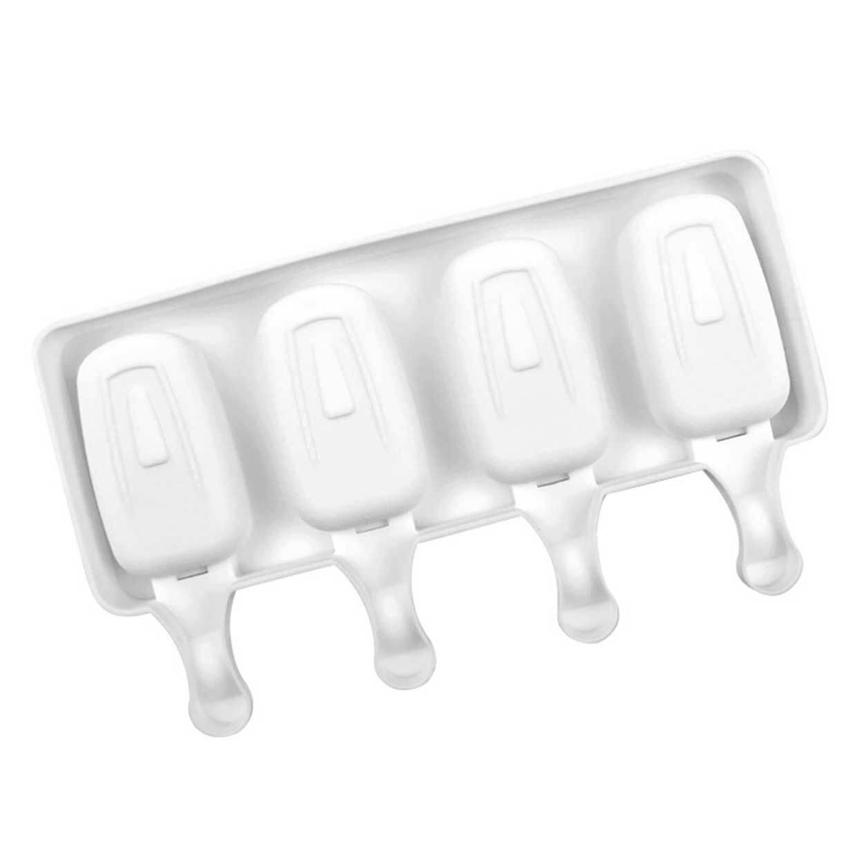 Silikonform för att göra egna glasspinnar hemma. Formen har fyra fack och fylls enkelt med exempelvis juice eller saft innan den ställs i frysen. BPA-fri livsmedelsklassad silikon ger en flexibel form som underlättar när glassen ska lossas; vid behov räcker det att spola utsidan med ljummet vatten. Temperaturtålighet från –40 till +240 °C gör att formen även kan användas till choklad och mindre bakverk. Glasspinnar ingår inte, så egna pinnar används.