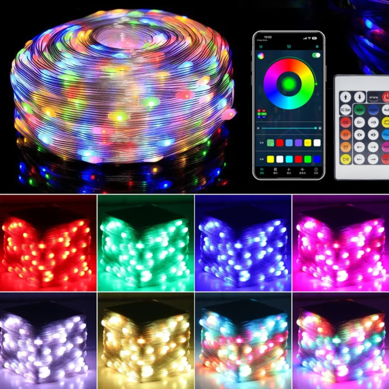 Ljusslinga / julgransbelysning – appstyrd RGB belysning – IP67, musikläge, fjärrkontroll