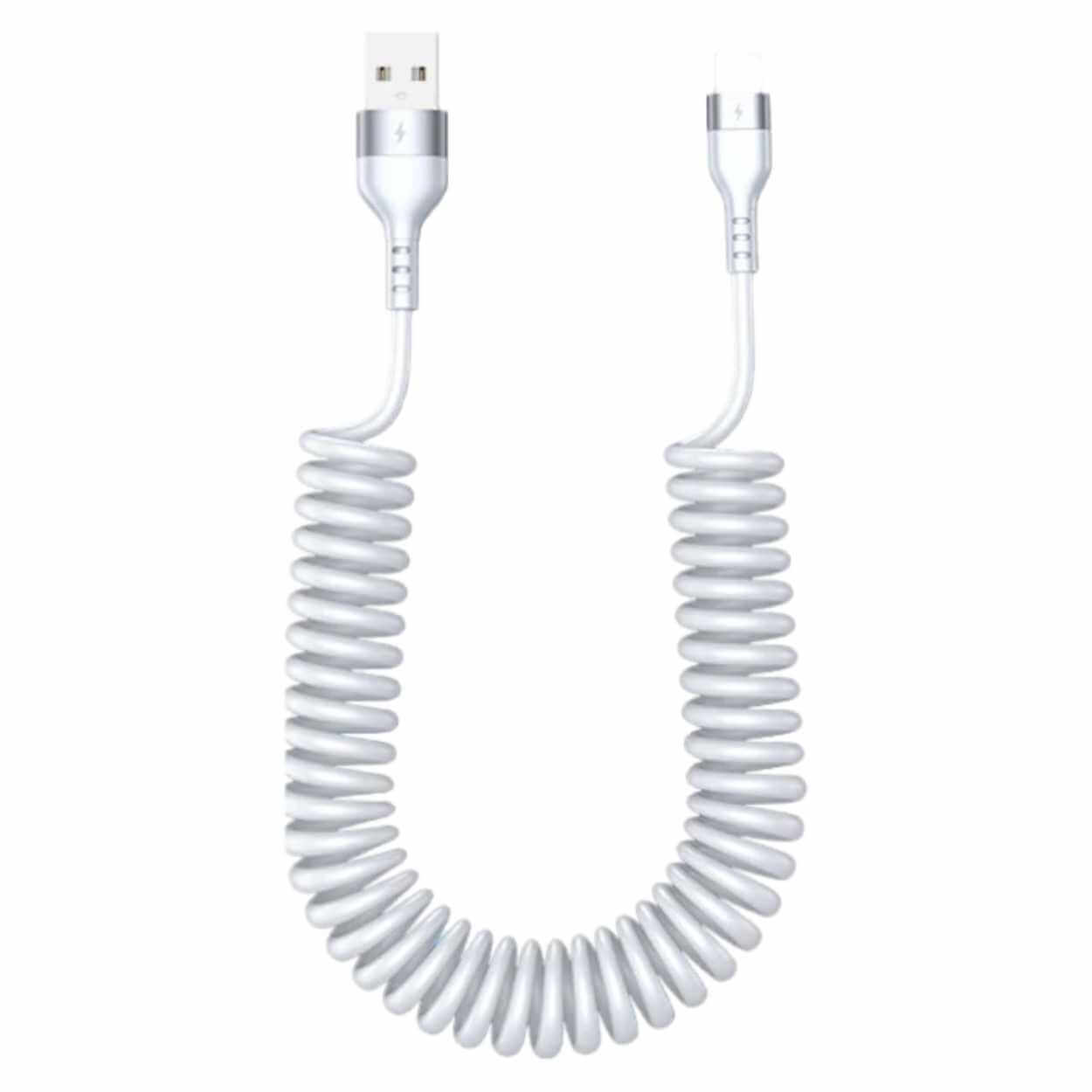 USB A till Lightning-spiralkabel för laddning och synk av enheter med Lightning-kontakt. Kabeln stödjer upp till 3 A laddström för snabb och effektiv laddning när den används med kompatibel laddare. Spiralformen håller kabeln kort och mer organiserad när den inte är fullt utdragen, vilket minskar trassel på skrivbordet eller i bilen. Den töjbara konstruktionen gör att kabeln kan förlängas vid behov och sedan komprimeras igen. Kabellängd 1,5 m för praktisk räckvidd i vardagen.