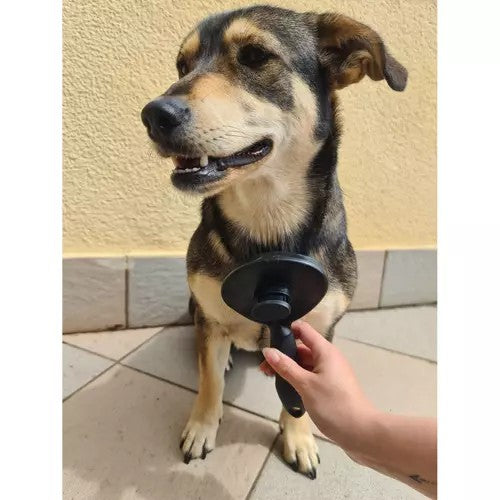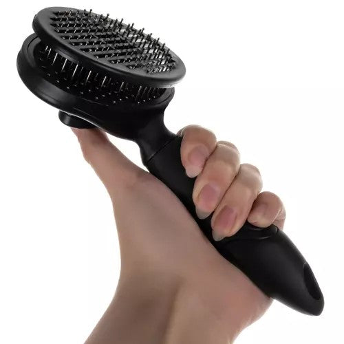 Självrengörande pälsborste som gör pälsvård enklare och mer hygienisk. Med ett knapptryck frigörs hår som fastnat i piggarna, så borstningen går snabbare och kräver mindre rengöring efteråt. Rundade borsttänder reder ut tovor på ett skonsamt sätt och ger samtidigt en behaglig massage som kan stimulera blodcirkulationen och hjälpa till att fördela pälsens naturliga oljor. Ergonomiskt, halksäkert handtag ger stabil kontroll. Passar hund, katt, kanin och andra husdjur med olika pälstyper.