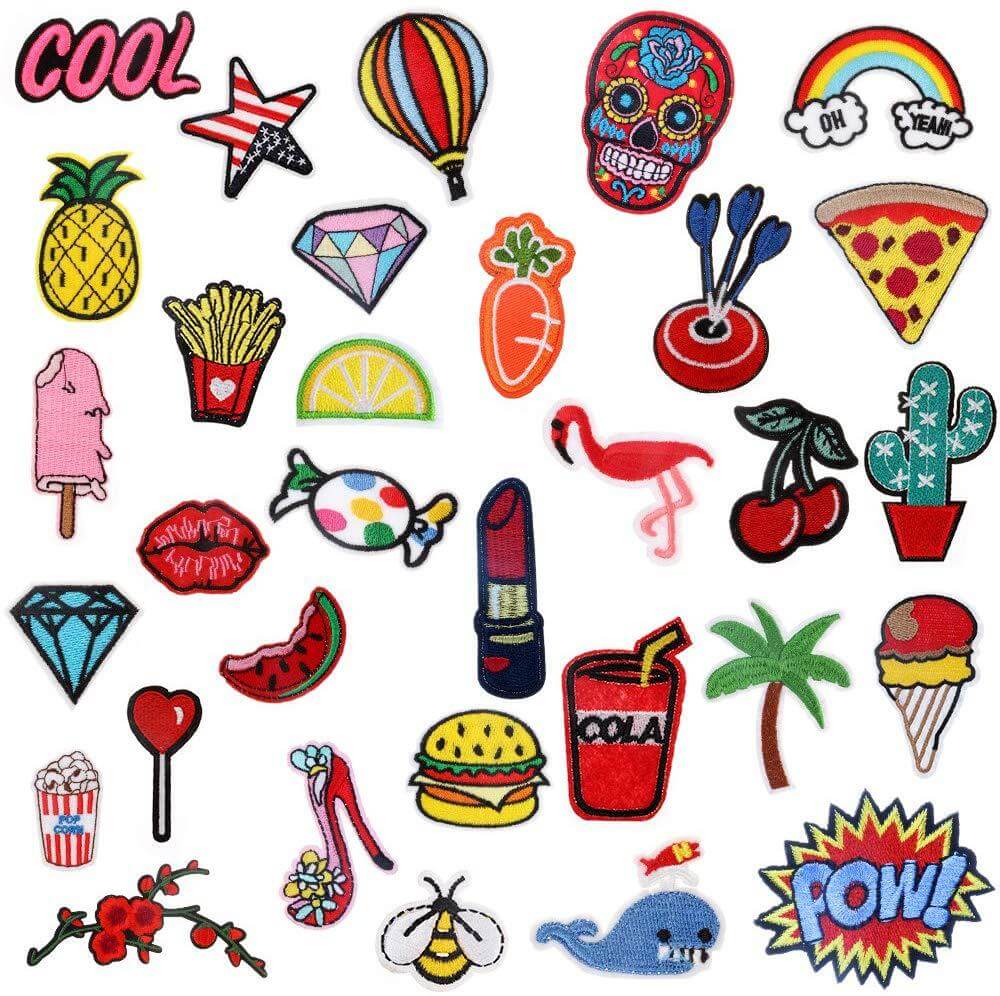 Retro stryklappar i 32-pack som ger plagg och accessoarer en personlig prägel eller täcker mindre slitage. Märkena är broderade och har en något styvare känsla som hjälper dem att hålla formen. Applicera genom att stryka fast på lämpligt tyg. För extra hållbarhet, särskilt på plagg som används ofta, kan märket även säkras med några stygn efter applicering. Tål maskintvätt upp till 60°C. Undvik torktumlare för att bevara fäste och brodyr.