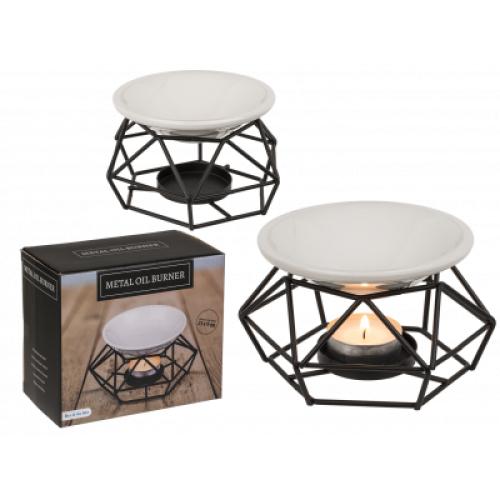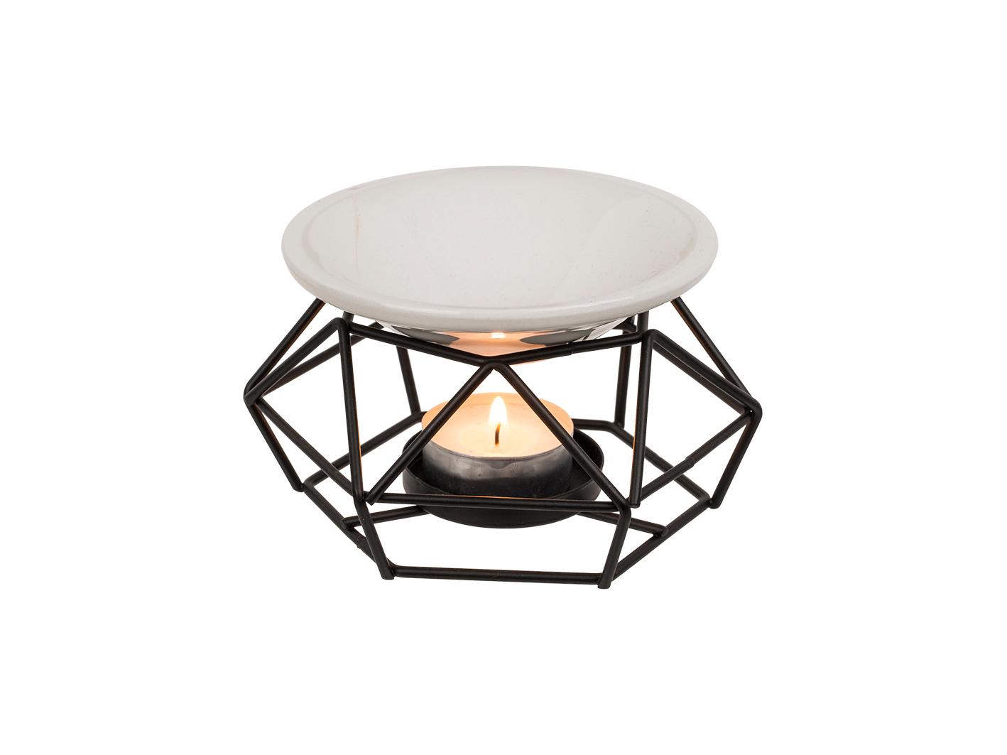 Aromalampa som sprider doft genom att värma eteriska oljor med ett värmeljus. Droppa olja i keramikfatet, placera ett tänt värmeljus i hållaren och låt värmen frigöra doften i rummet efter några minuter. Konstruktionen kombinerar ett värmetåligt keramikfat med ett stabilt metallställ, vilket gör den enkel att använda i vardagsrum, sovrum eller badrum. Passar när du vill fräscha upp ett rum eller skapa en lugnare miljö utan el eller sladdar. Värmeljus och oljor ingår inte.