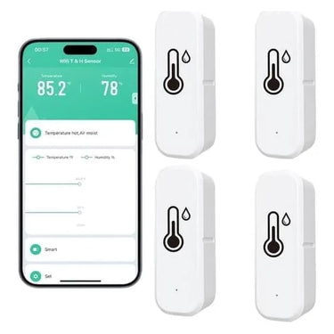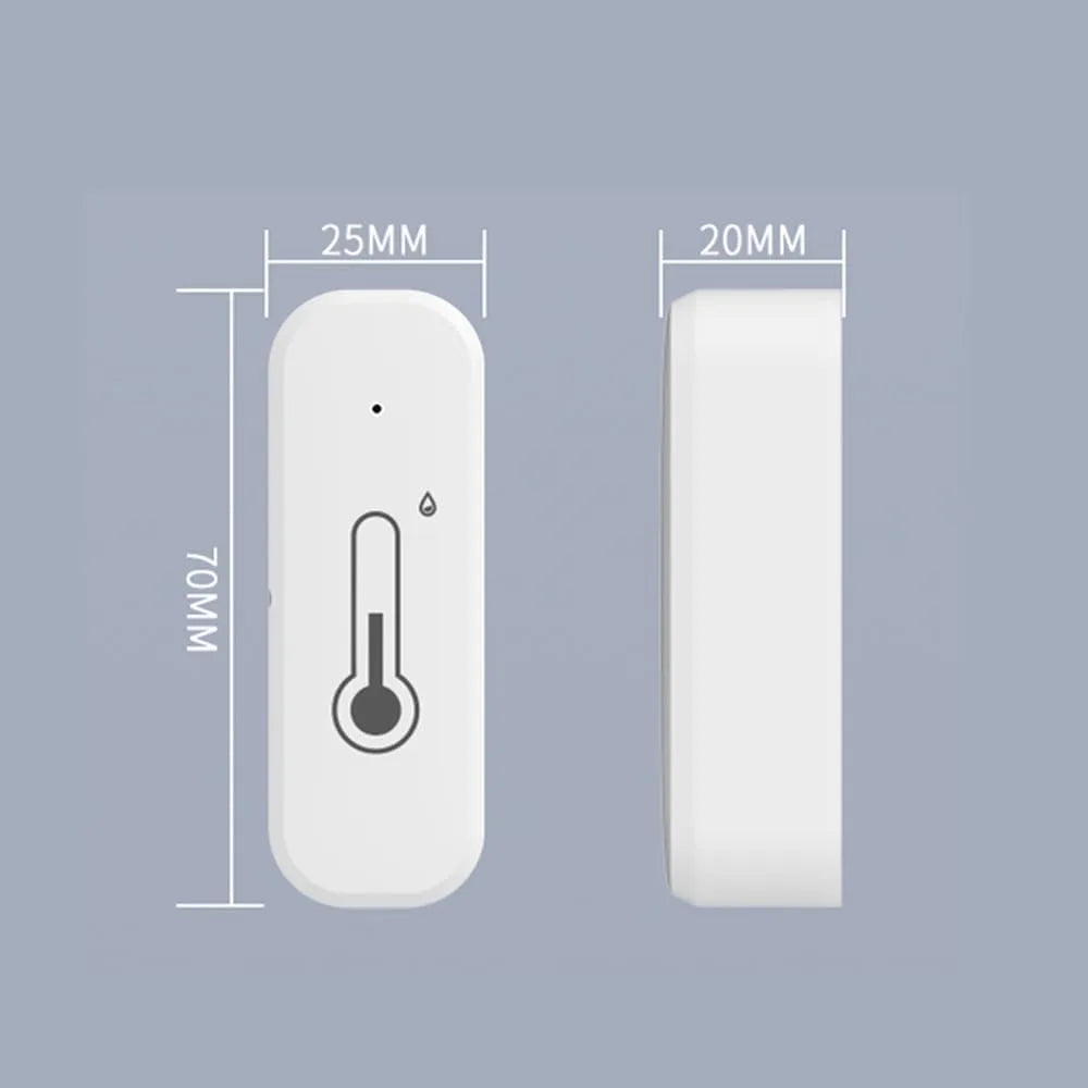 Smart temperatur- och luftfuktighetssensor för övervakning av inomhusklimat via app. Mätvärden visas i realtid och kan användas som triggers i smarta scenarion, exempelvis för att starta fläkt, luftfuktare eller avfuktare när valda gränser passeras. Anslutning sker via Wi‑Fi och Bluetooth och sensorn fungerar med Tuya Smart och Smart Life. Batteridrift på 3 V AAA gör installationen enkel och flexibel utan kabeldragning. Passar för rum där temperatur och luftfuktighet behöver följas löpande.
