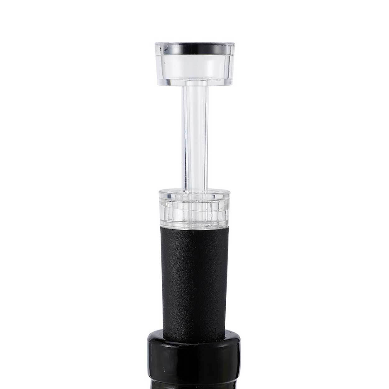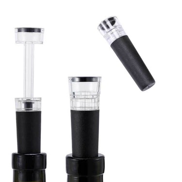 Vakuumkork med pump som hjälper till att bevara arom och fräschör i öppnade flaskor. Korken sätts i flasköppningen och pumpas tills motstånd känns, vilket minskar mängden luft i flaskan och bromsar oxidation. Passar vin och andra flaskor med liknande öppning, även för bubbel. Tillverkad i livsmedelsklassad plast för trygg användning i köket och hemmabaren. Enkel att ta av och använda igen när flaskan ska förslutas på nytt.