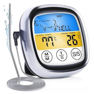 Stektermometer / kötttermometer – temperaturmätning grill ugn – rostfri sond, pekskärm, larm