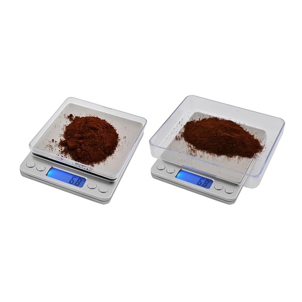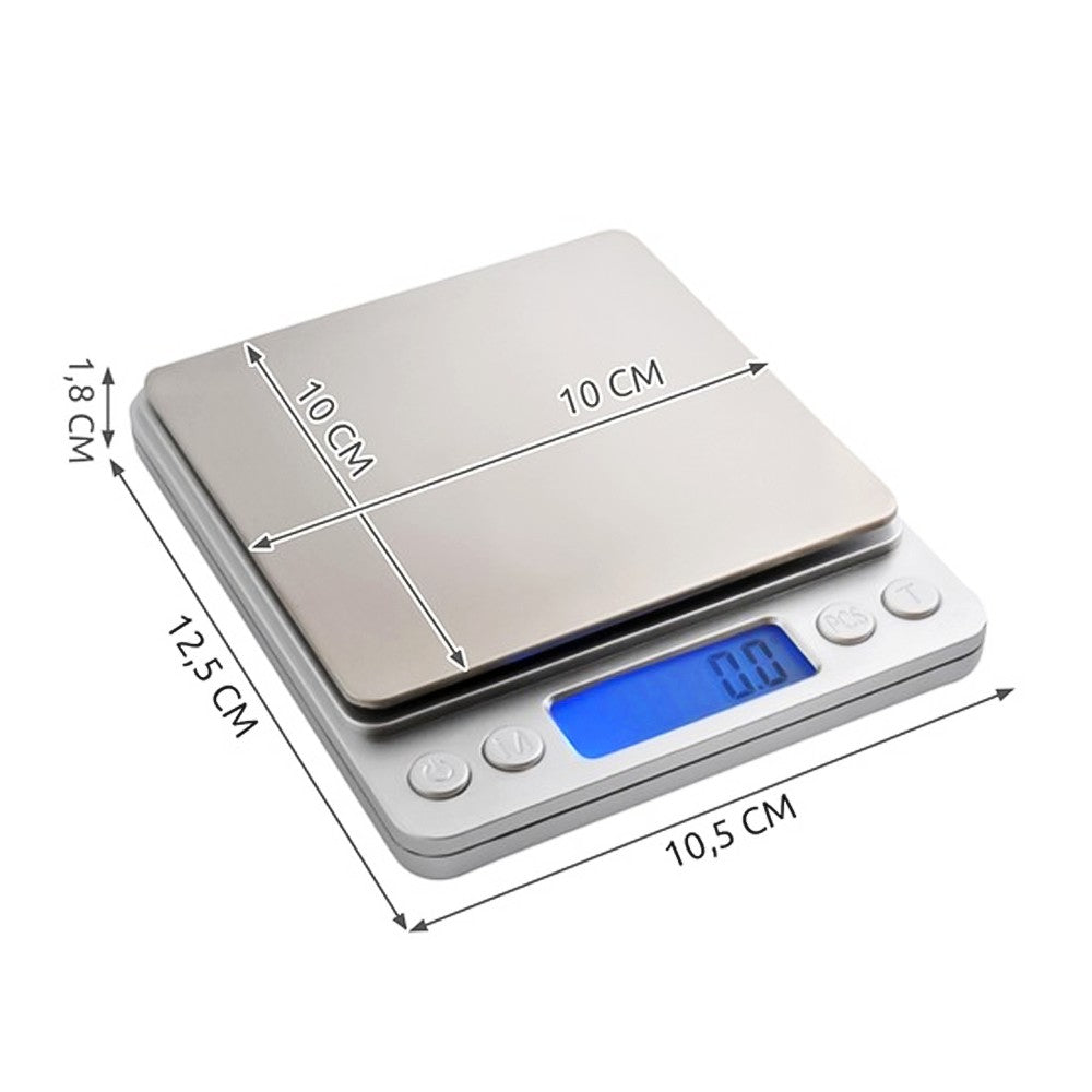 0,1 g–2 kg ±0,1 g noggrannhet Tara-funktion LCD med belysning 2 skålar ingår