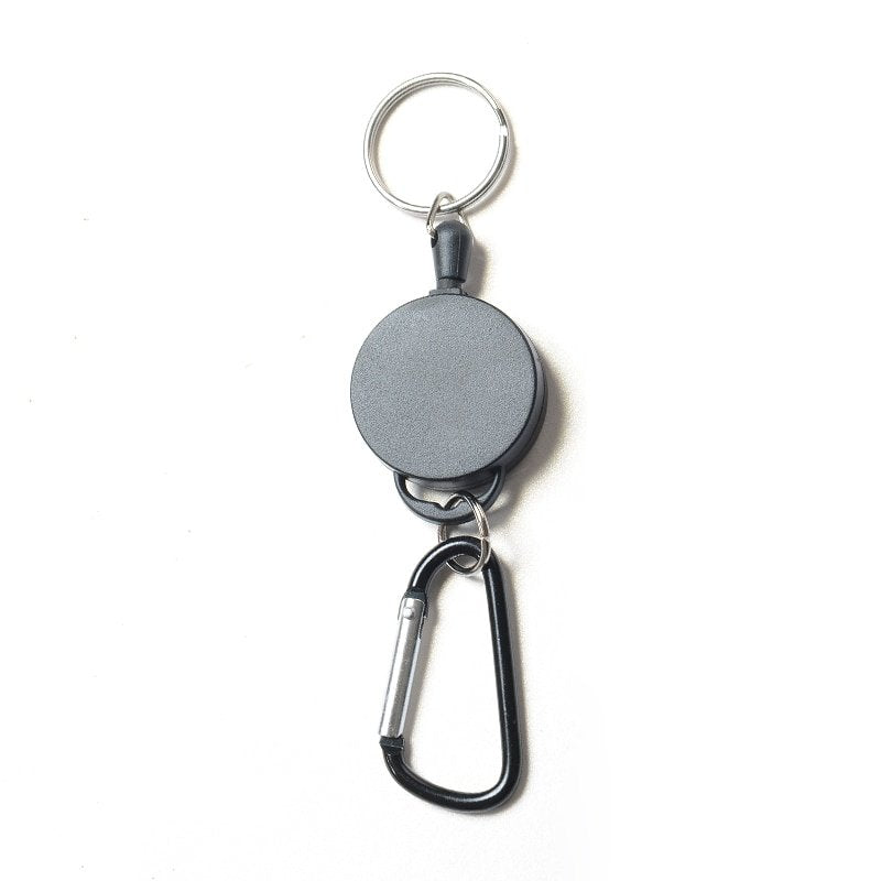 Utdragbar nyckelhållare som gör det enklare att ha nycklar och passerkort nära till hands. Den automatiska indragningen drar tillbaka nylonlinan efter användning, vilket minskar risken att snöret hänger i vägen. Karbinhaken gör att hållaren kan fästas i exempelvis byxhälla, väska eller arbetskläder för stabilt grepp. Linan kan dras ut upp till 650 mm så att kort kan blippas och nycklar nå lås utan att lossas från fästet. Passar för vardag, arbete och aktiviteter där snabb åtkomst behövs.