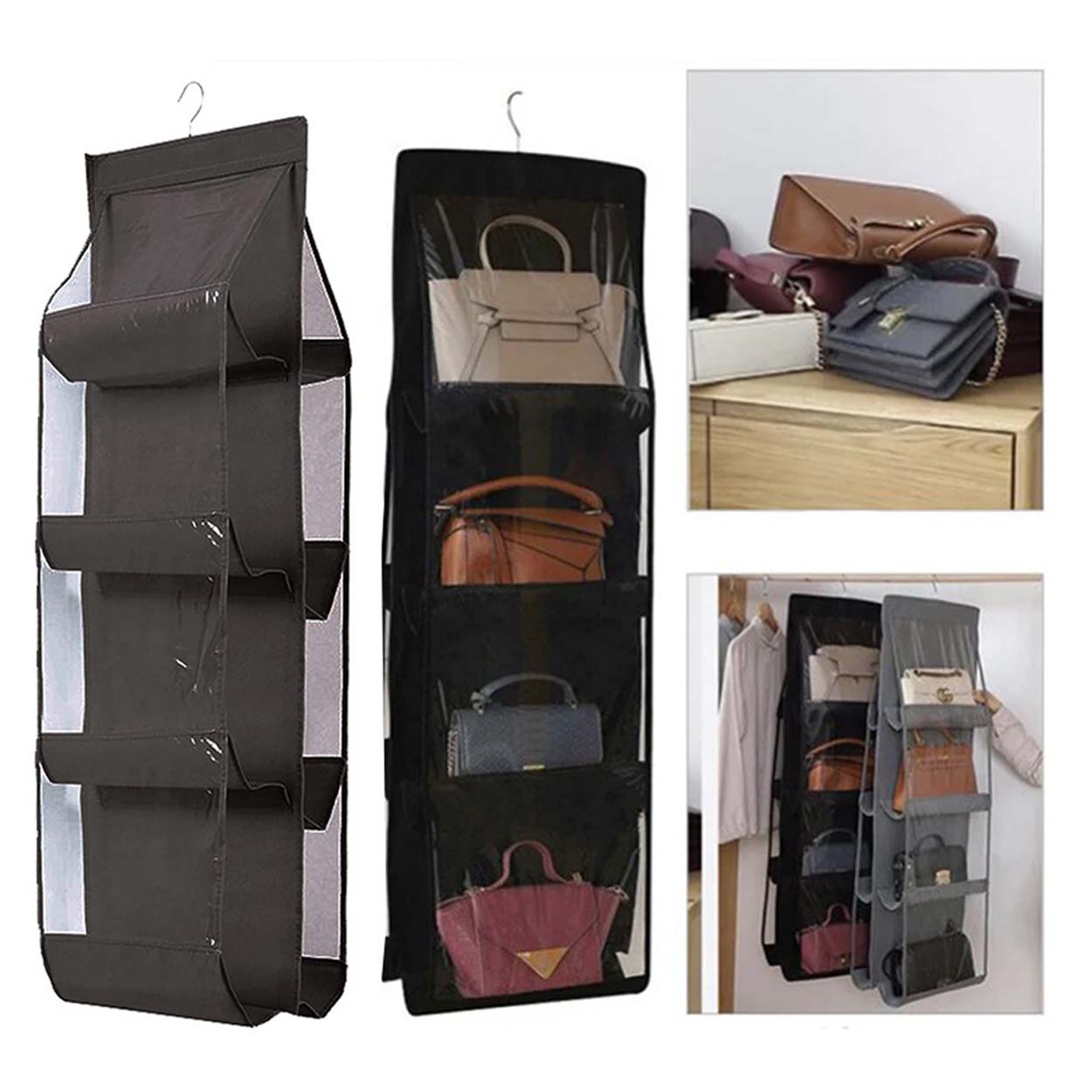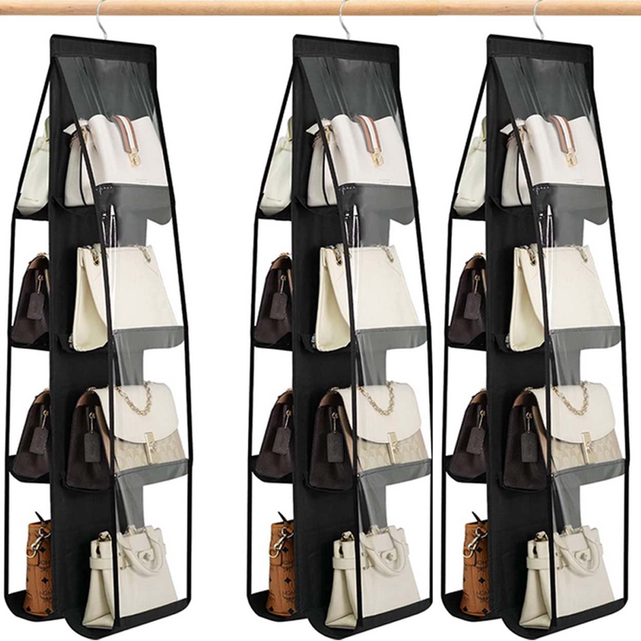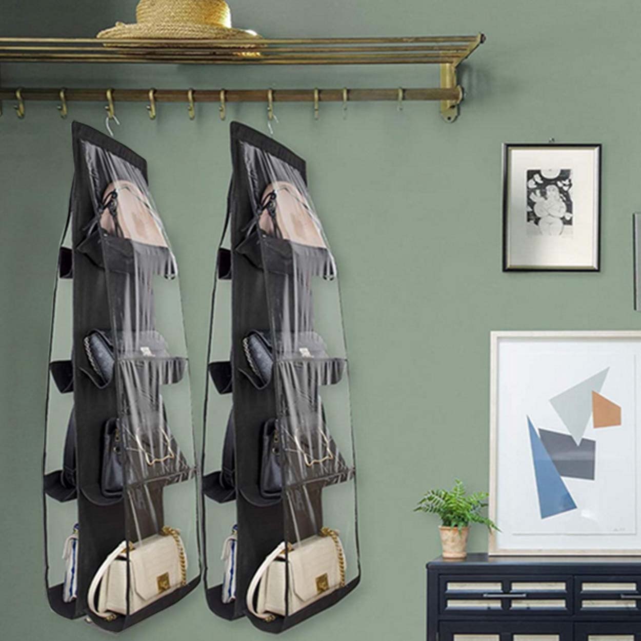 Väskorganisatör / garderobsorganisatör – hängande väskförvaring – 8 fickor, metallhängare