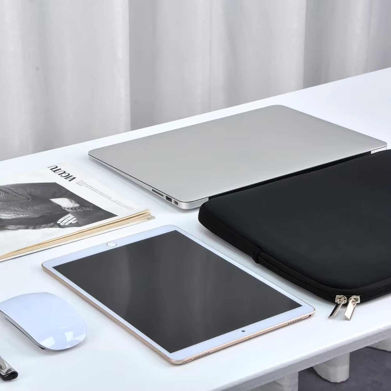 Laptopfodral i neopren som ger ett mjukt och stötdämpande skydd vid transport och förvaring. Dragkedjan gör att datorn tas i och ur snabbt, samtidigt som fodralet håller innehållet på plats i väskan. Materialet är vattenavvisande och hjälper till att minska risken för skador vid lätt fukt eller spill. Formatet är anpassat för 15,6-tums bärbara datorer och fungerar med många vanliga modeller från exempelvis Apple, HP, Asus, Acer och Lenovo.