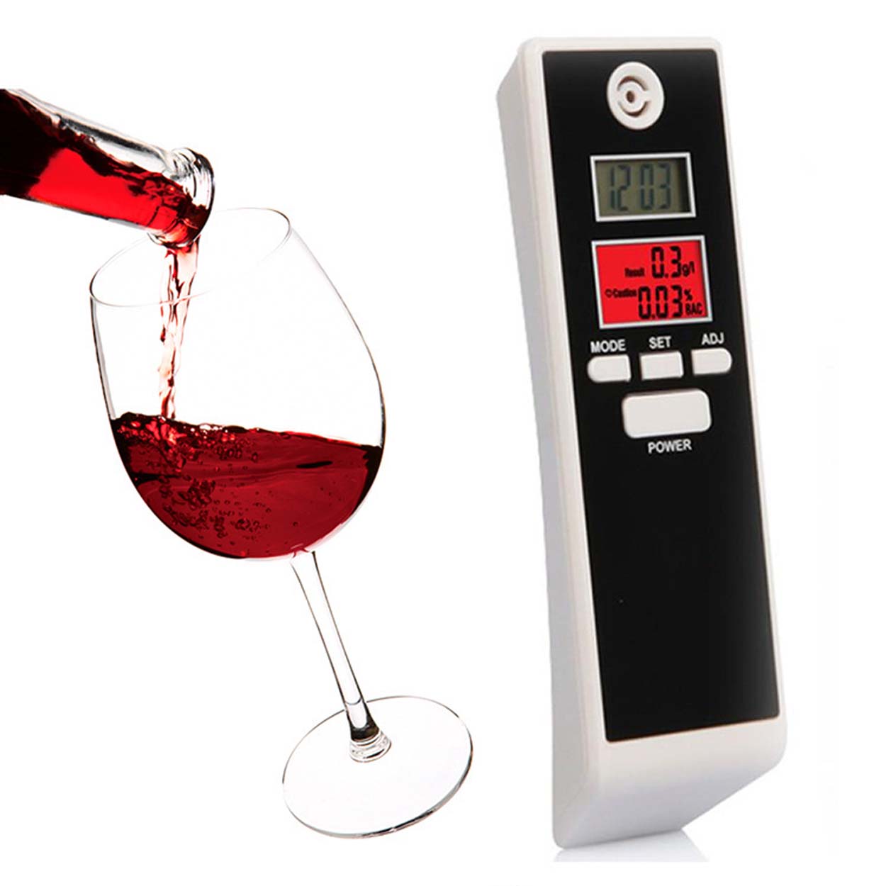 Alkomätare / alkoholtestare – utandningsmätning – mätområde 0–1,9 g/l, bakbelyst LCD