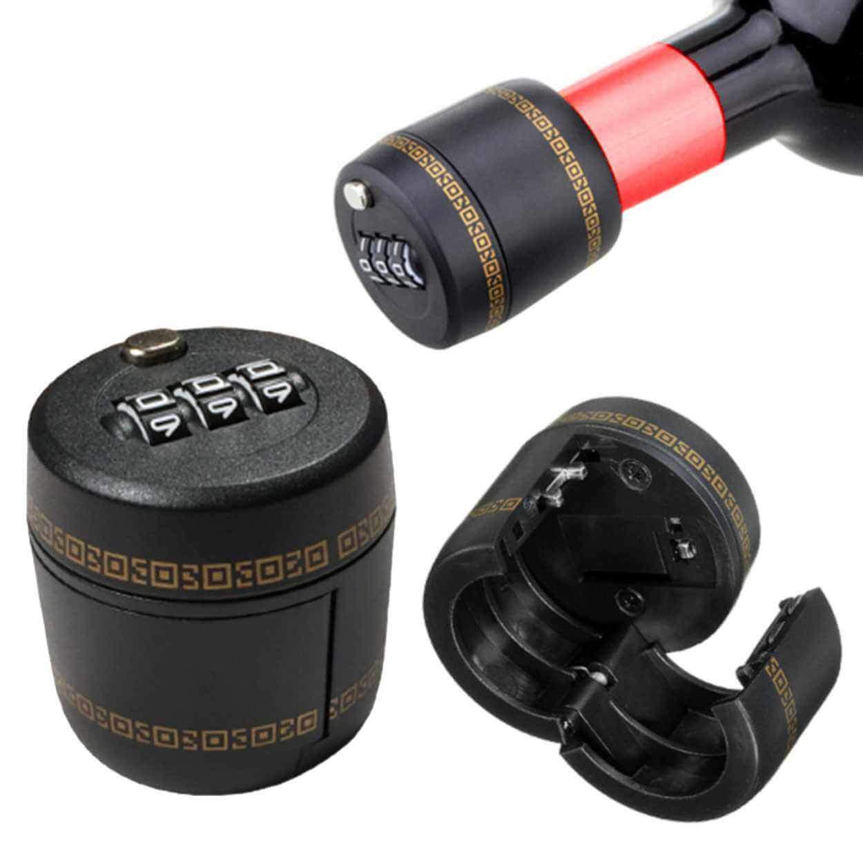 Flaskkork / kodlås – låser vin och spritflaskor – 3-siffrig kombination, 26–28 mm