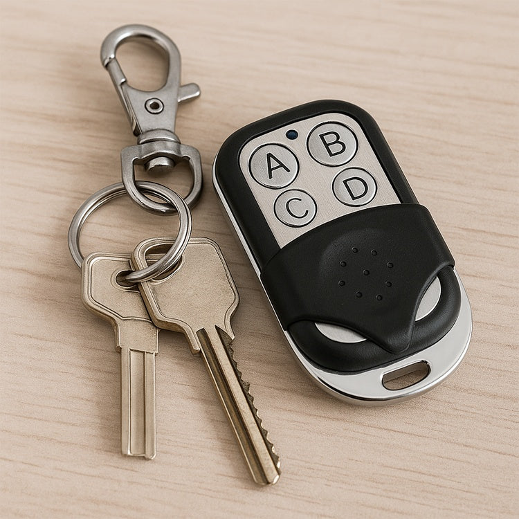 Universal kodklonare som fungerar som fjärrkontroll för att kopiera, rensa och återställa koder till kompatibla system. Fyra programmerbara knappar gör det enkelt att styra flera enheter utan att byta sändare. Skyddande lock hjälper till att undvika oavsiktliga knapptryck i ficka eller väska. Enheten arbetar på fast kod 433,92 MHz och drivs av A27-batteri på 12 V. Metallhöljet ger en robust känsla och nyckelring gör den smidig att bära med sig. Instruktioner medföljer för snabb programmering.
