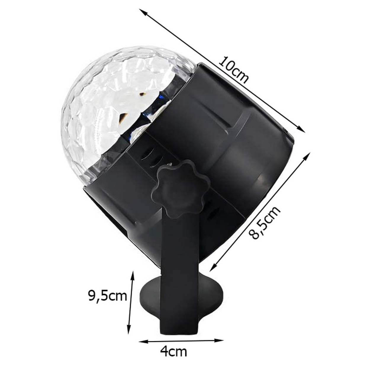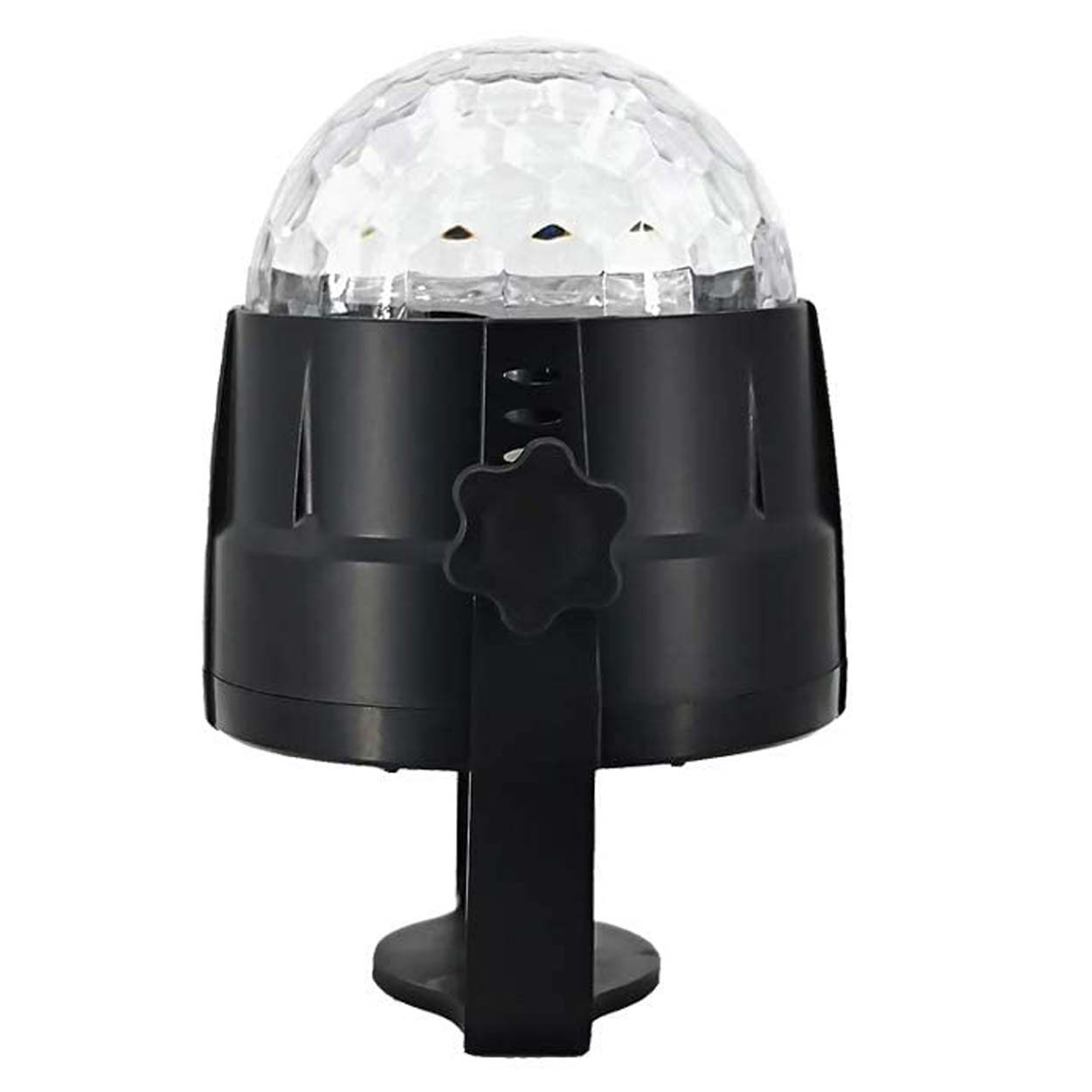 Discolampa med RGB LED-projektor som skapar rörliga ljuseffekter på väggar, tak och golv inomhus. Tre LED på 1 W i röd, grön och blå ger tydliga färgskiftningar, och sju ljusprogram gör det enkelt att anpassa stämningen. Styrning sker med medföljande fjärrkontroll eller via röststyrning som reagerar på musik och ljud. Lampan kan stå på bord eller hylla, eller monteras i vägg eller tak med det medföljande fästet. Drivs via nätström och har 80 cm kabel.