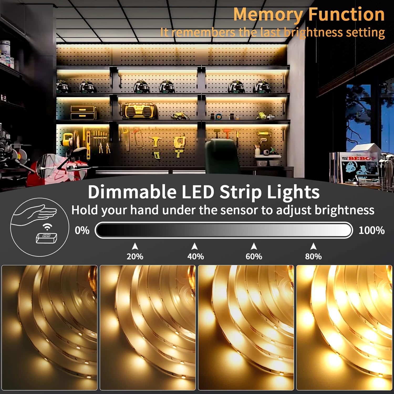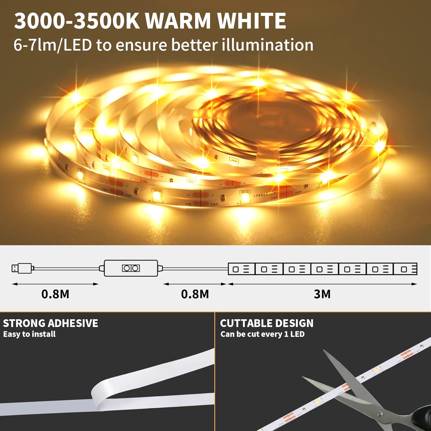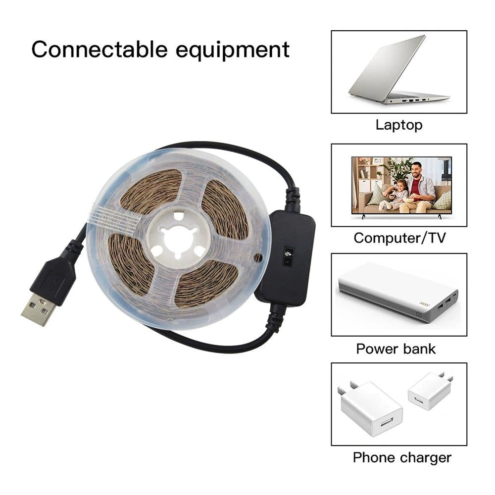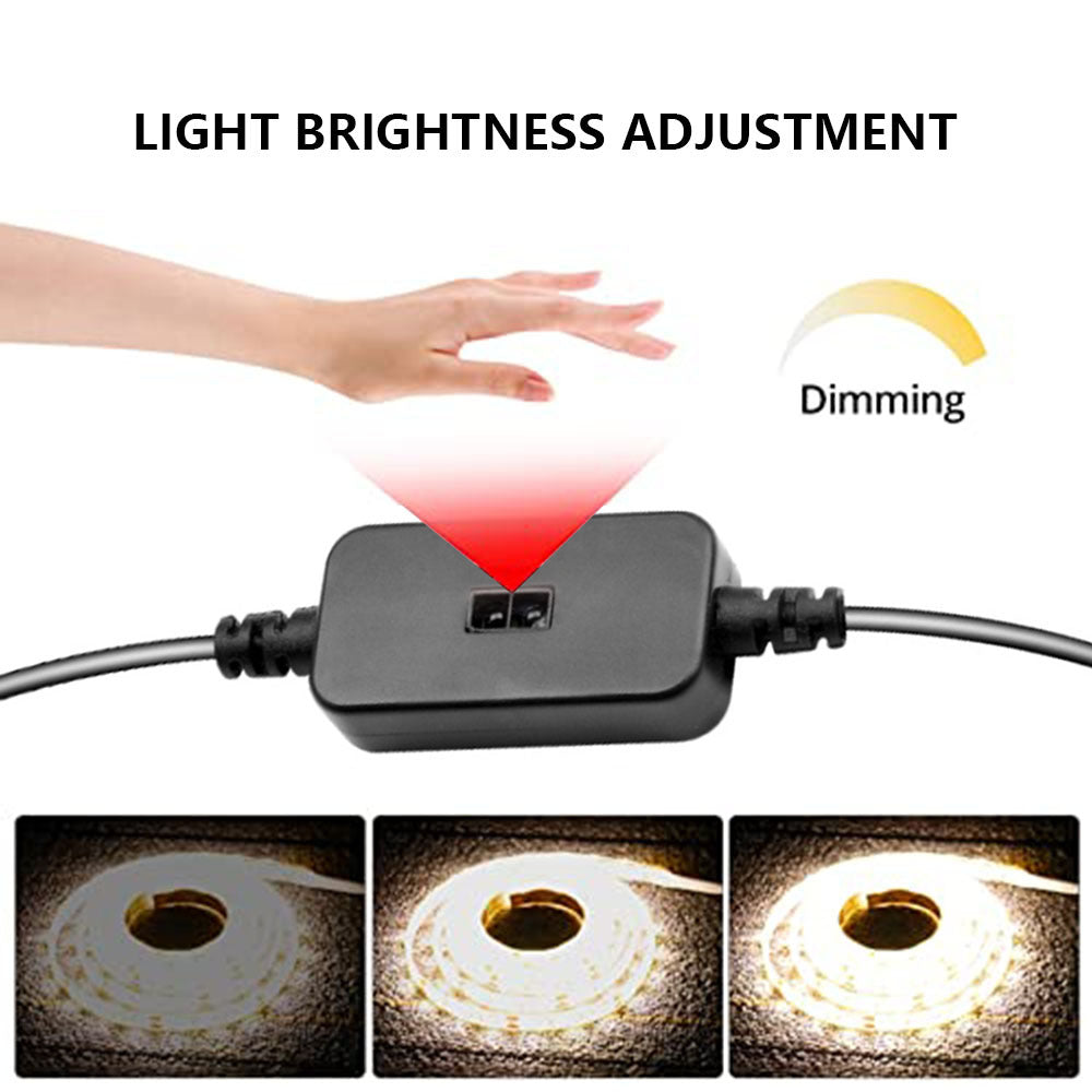 LED-list för praktisk inomhusbelysning i skåp, garderob och kök. Handrörelsesensorn gör att ljuset kan tändas och släckas utan att trycka på en knapp, vilket passar där händerna ofta är upptagna. Ljusstyrkan kan dimras för att ge rätt nivå vid arbetsljus eller mjukare orienteringsljus. Listen drivs via USB 5 V och monteras med självhäftande baksida. Den kan kapas vid markerade punkter för att passa önskad längd. SMD 3528 med 30 dioder per meter ger ett jämnt ljus.