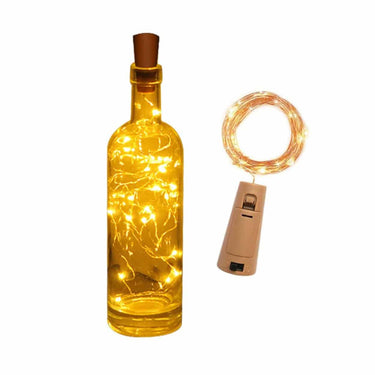 LED-ljusslinga för flaskor som gör det enkelt att skapa dekorativ belysning i tomma vinflaskor, burkar och liknande. Batteriboxen är utformad som en kork och placeras direkt i flaskhalsen, vilket ger en ren installation utan synliga kablar. Ljusslingan är 1 meter lång och har 10 LED-ljuskällor. Den formbara kabeln kan böjas för att fylla flaskan jämnt eller formas runt arrangemang på bord, i fönster eller i blomsterdekorationer. Strömbrytare sitter på korken och drivs av 3 LR44-batterier som ingår.