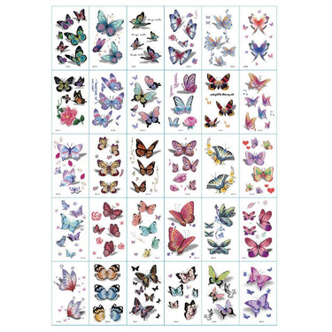 Temporära tatueringar i 30-pack för snabb kroppskonst utan permanent resultat. Varje ark har blandade motiv som kan kombineras för ett personligt uttryck. Gnuggisarna appliceras enkelt med vatten på ren, torr hud och fäster på några minuter. Den vattentåliga ytan ger bättre hållbarhet vid vardagligt slitage och kan sitta kvar i upp till 4–5 dagar beroende på placering och friktion. När du vill byta stil tas tatueringarna bort smidigt med olja eller alkoholbaserad remover.