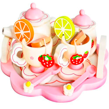 16 delar Träteservis Rolleksservering Bricka och kanna Fruktbitar ingår