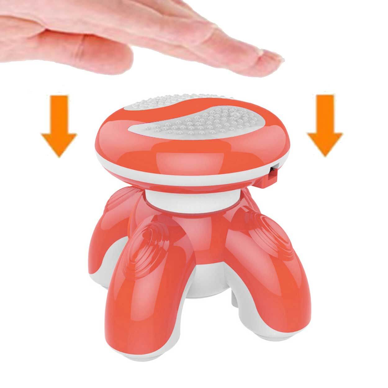 Mini massageapparat för vibrationsmassage av ömma muskler och spända punkter. Enheten aktiveras när den pressas mot kroppen och styrkan justeras genom hur hårt du trycker, vilket gör det enkelt att anpassa massagen utan separata reglage. De vibrerande benen ger en fokuserad behandling som kan användas på huvud, nacke, axlar, armar och rygg. Batteridrift gör den smidig att ta med till gymmet, kontoret eller på resa när du vill mjuka upp muskler och stödja återhämtning.