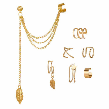 Ear cuff-set som ger känslan av öronpiercing utan att du behöver göra hål. Flera cuffs ingår så att du kan variera placering och kombinera dem för olika uttryck. Passar när du vill testa en ny stil tillfälligt eller komplettera vanliga örhängen. Cuffs sätts på genom att försiktigt fästa dem runt örats kant och tas av lika enkelt, vilket gör dem smidiga för både vardag och fest. Ett praktiskt val för dig som vill kunna byta look snabbt utan permanent håltagning.