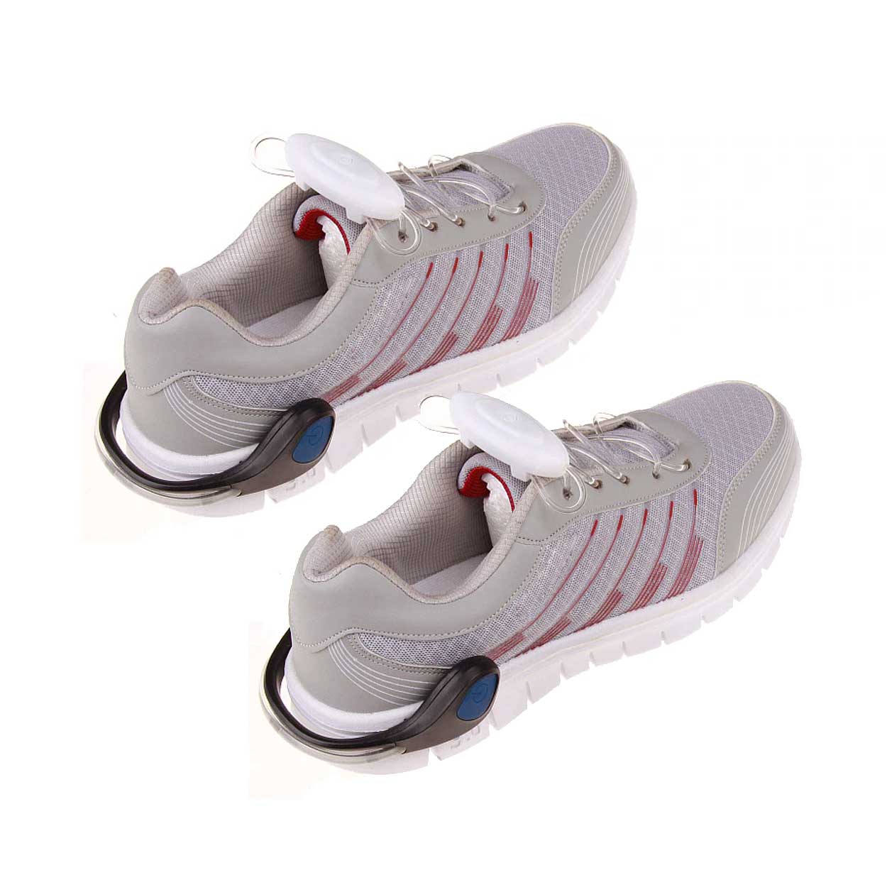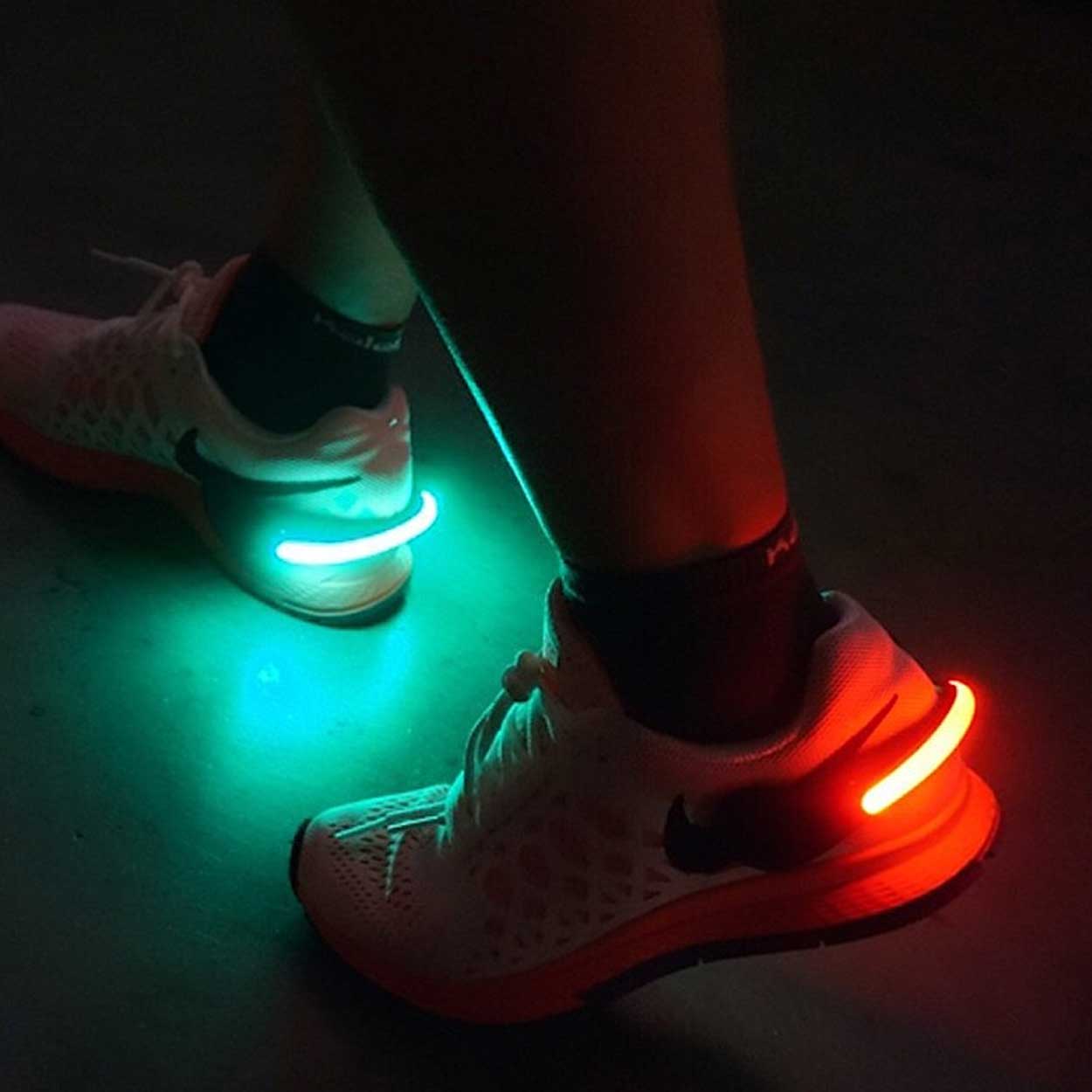 LED-hällampor som fästs bak på löparskor och gör att du syns bättre i mörker vid promenad och löpning. Lamporna ger skiftande LED-ljus som tydligt markerar din position bakifrån. Universell passform gör att de kan användas på de flesta skor utan verktyg. Batteridrift med CR2016-batterier gör dem enkla att komma igång med direkt, eftersom batterier ingår. Levereras som ett par för användning på båda skorna.