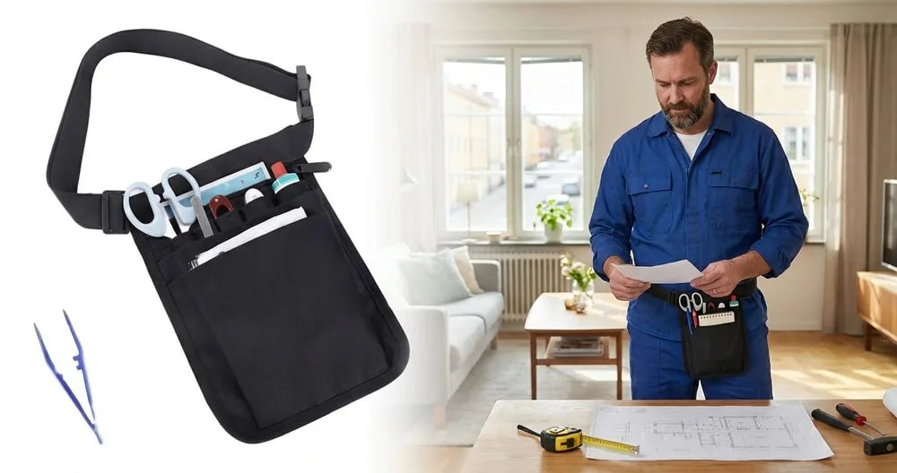 Medicinsk midjeväska för organiserad förvaring av små instrument och personliga tillbehör under arbete och resor. Väskan har flera fack som ger snabb åtkomst till exempelvis pennor, sax, pincett och förbrukningsartiklar, samt ett dragkedjefack för sådant som behöver ligga säkrare. Yttermaterial i vattentålig nylon hjälper till att skydda innehållet vid stänk och gör väskan enkel att torka av. Bär den i midjan med justerbart bälte eller använd den avtagbara axelremmen för crossbody.