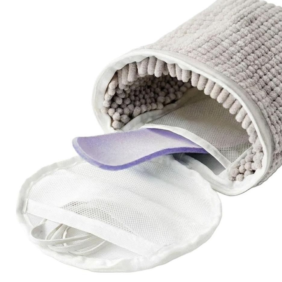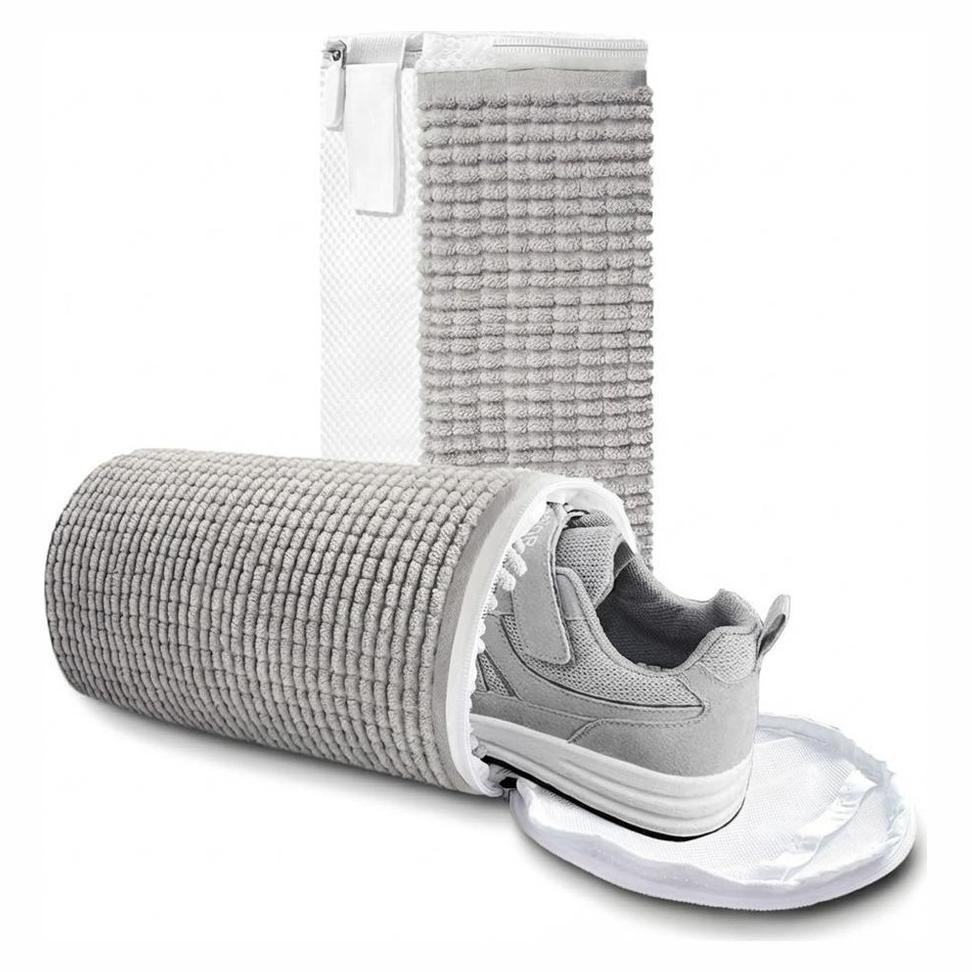 Skotvättspåse för tvättmaskin som gör det enklare att tvätta sneakers och andra tygskor mer skonsamt. En 360° chenille-mikrofiberinsida hjälper till att lossa smuts under tvätt, medan ett ventilerande mesh-ytterhölje släpper igenom vatten och tvättmedel för effektiv sköljning. Den cylindriska, formstabila konstruktionen minskar risken för att skon tappar formen och dämpar samtidigt slag mot trumman. Innerfack håller skosnören och innersula separerade för mer organiserad tvätt.