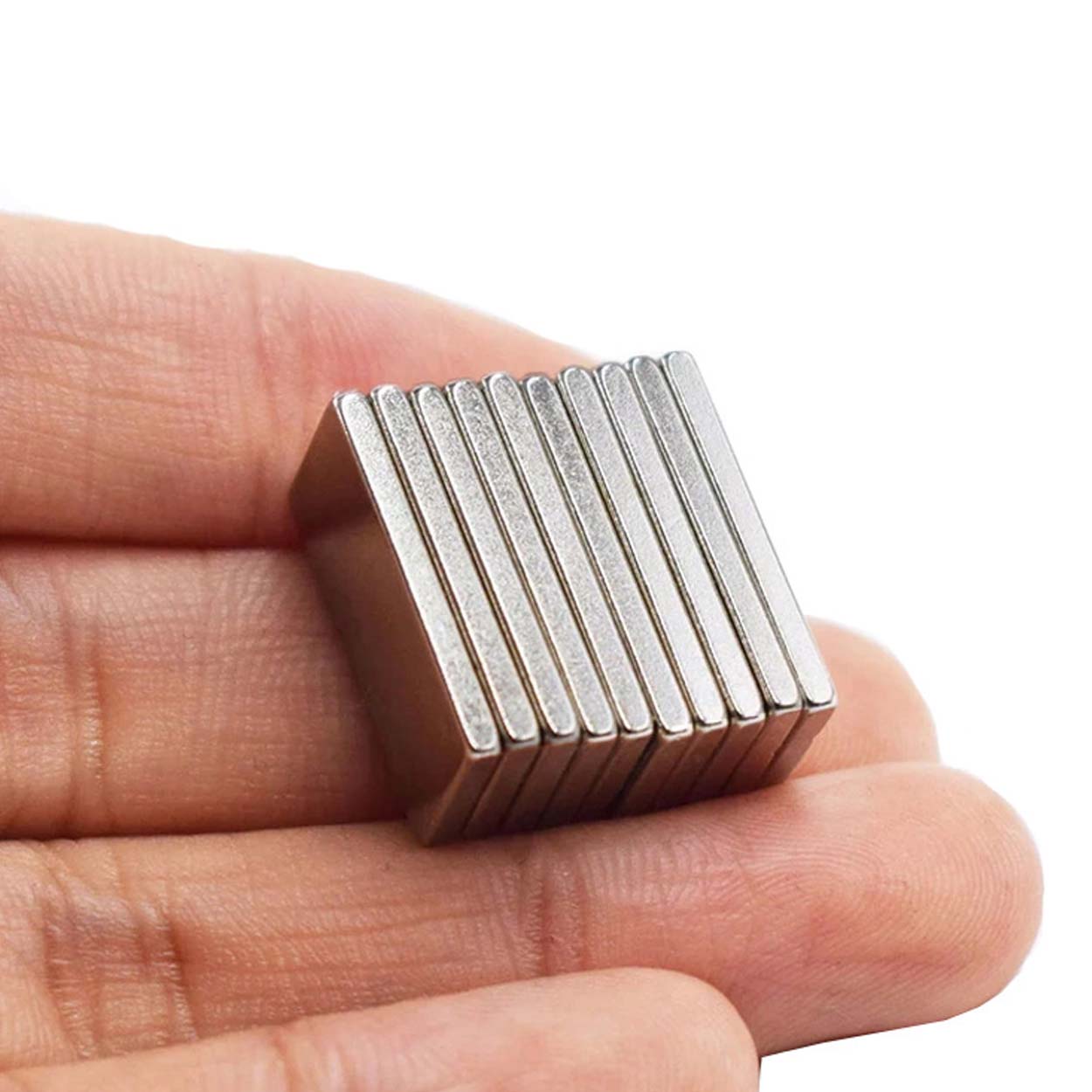 Neodymmagneter i rektangulärt format för stark fixering i små utrymmen. Magneterna är tillverkade i NdFeB (neodym, järn och bor) och ger hög hållkraft trots kompakt storlek. Passar för montering, prototyper och tekniska projekt inom exempelvis tryck, förpackning, plast, möbelkonstruktion och belysningslösningar. Antikorrosionsbeläggning ger bättre tålighet i normal miljö. Magnetfältet är kraftigt och kan påverka känslig elektronik samt medicinska implantat, så hantera med försiktighet och håll avstånd vid behov.
