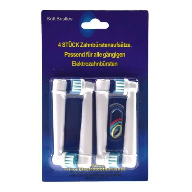 Oral-B kompatibla tandborsthuvuden i standardmodell SB-17A för elektrisk tandborste. Mjuka Dupont Tynex-strån ger en skonsam rengöring som passar daglig användning. Stråna är vinklade för att nå djupare mellan tänderna och hjälpa till att lossa och ta bort plack där en manuell tandborste ofta missar. Huvudena är enkla att byta när det är dags för ett fräschare borsthuvud och jämnare rengöringsresultat.