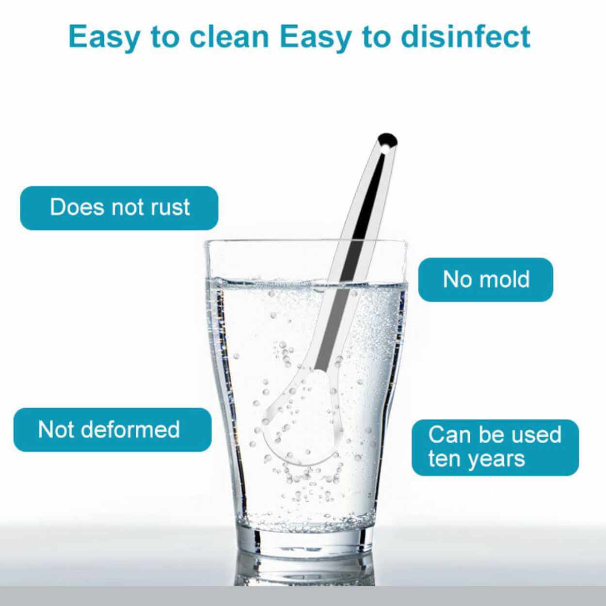 Tungskrapa i rostfritt stål för daglig munhygien och renare känsla i munnen. Skrapan används efter tandborstning genom att försiktigt dra den över tungans yta för att avlägsna beläggningar som kan bidra till dålig andedräkt. Materialet är slitstarkt och hygieniskt, samtidigt som det är lätt att skölja rent och kan steriliseras vid behov. Den ergonomiska utformningen ger ett stabilt grepp och gör rengöringen enkel och kontrollerad.