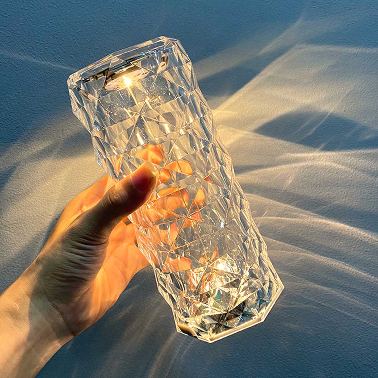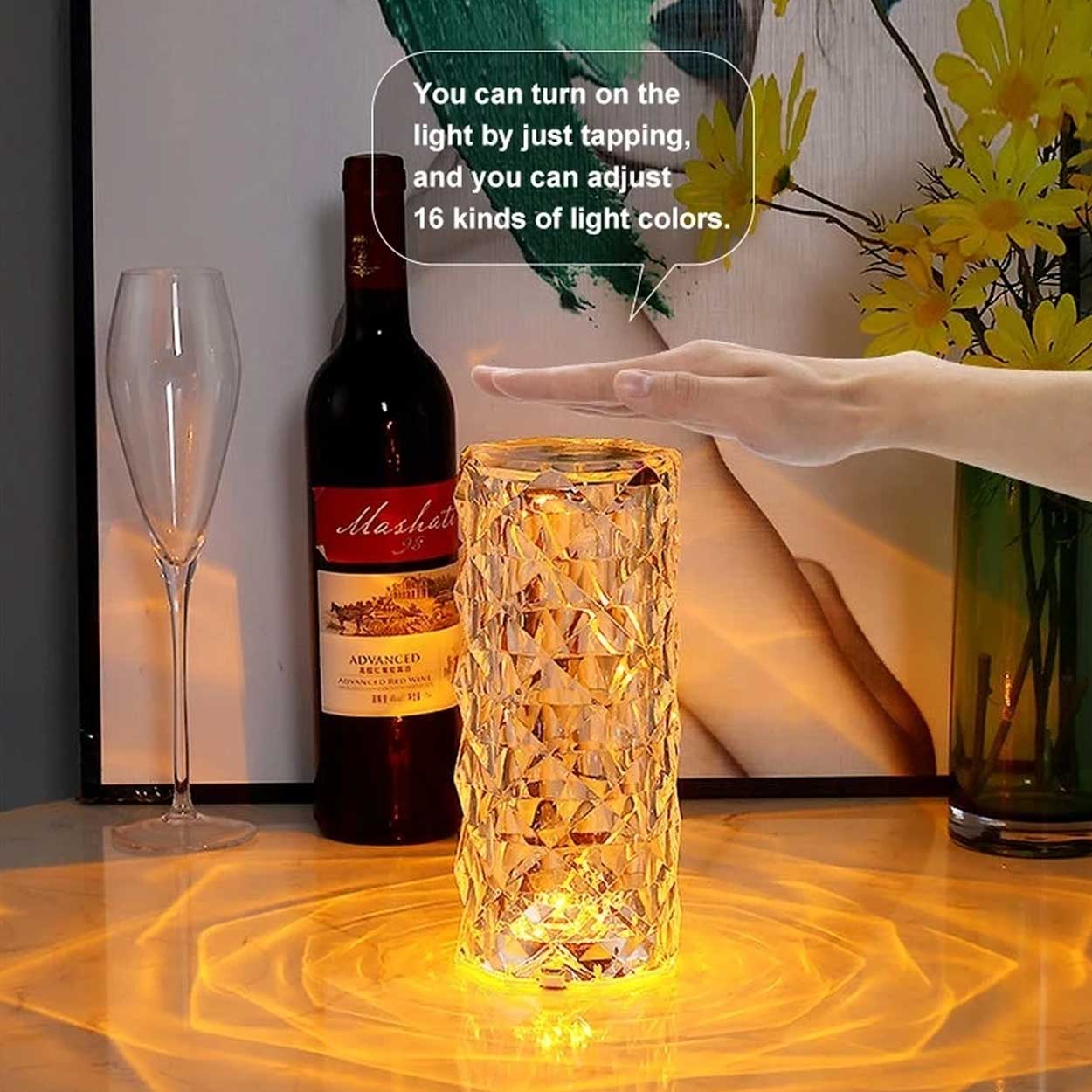 Kristall bordslampa / stämningslampa – färgskiftande belysning – 16 färger, fjärrkontroll, uppladdningsbar