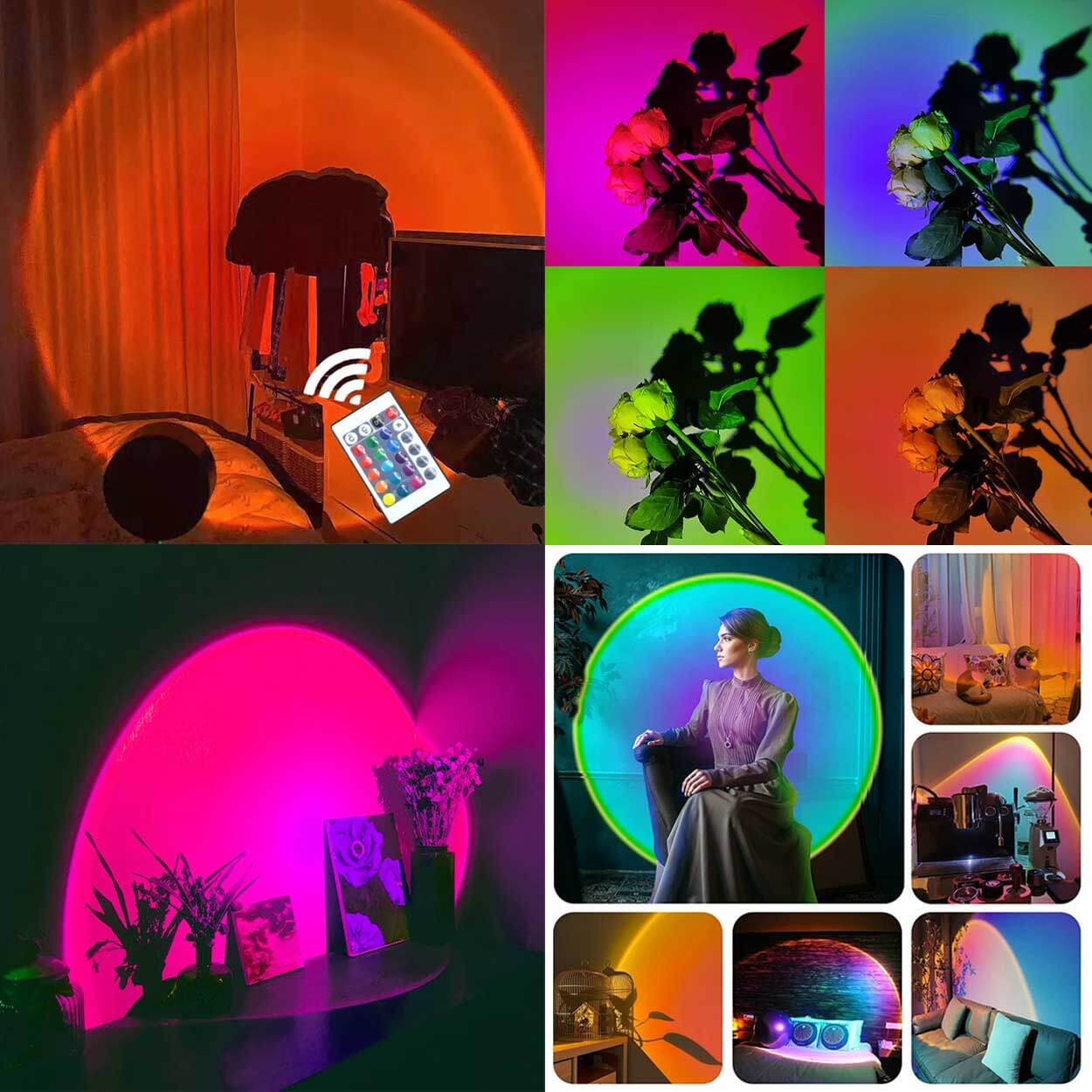 Solnedgångslampa / projektorlampa – stämningsbelysning – RGB LED, USB, fjärrkontroll