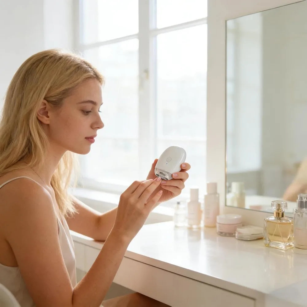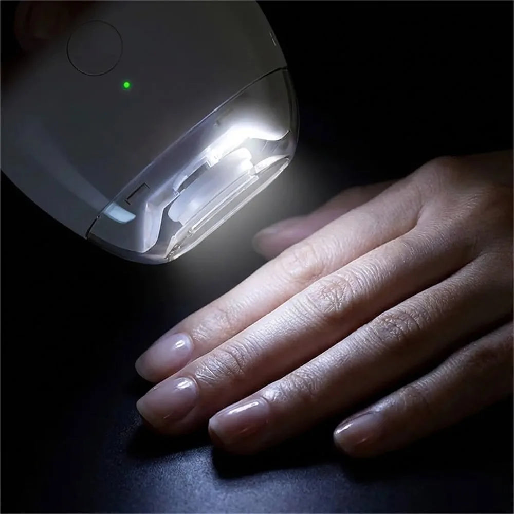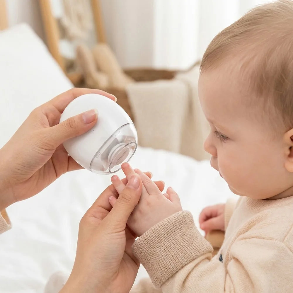 Elektrisk nagelfil för baby som filar och polerar naglar skonsamt hemma. Tre hastighetslägen gör det lätt att anpassa styrkan efter tunna barnnaglar och egen vana. Inbyggt LED-ljus ger bättre sikt vid användning i svagt ljus. En skyddande kåpa hjälper till att minska risken för oavsiktlig kontakt och kan samla upp nagelrester för enklare rengöring. Enheten laddas via USB Type-C och är smidig att ta med vid resor.