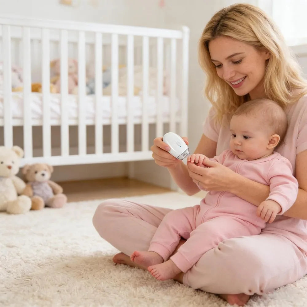 Elektrisk nagelfil baby / nageltrimmer – skonsam nagelvård hemma – 3 hastigheter, LED-ljus