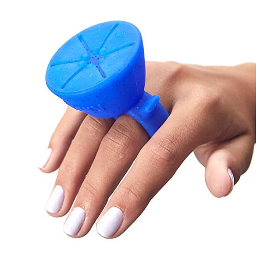Nagellackshållare i ringformat som gör nagelmålning enklare när du vill ha flaskan nära till hands. Ringen träs på fingret och håller nagellacksflaskan stabilt under applicering, vilket ger bättre kontroll och minskar risken att tappa eller spilla. Tillverkad i stretchig silikon som anpassar sig efter fingerstorlek och sitter bekvämt under användning. Passar för både hemmabruk och när du vill kunna måla naglarna på språng utan att behöva ställa flaskan på ett bord.