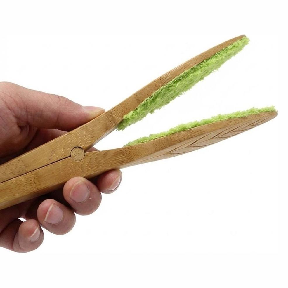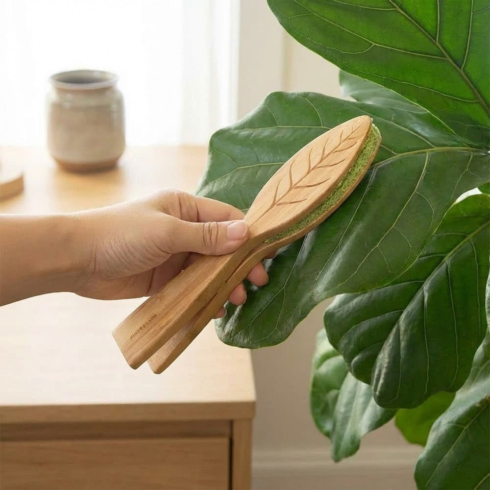 Bladrengöringstång är ett handhållet verktyg som hjälper till att hålla krukväxters blad rena från damm och beläggningar. Bladet förs mellan tångens käftar så att båda sidorna torkas samtidigt, vilket gör den smidig vid regelbunden växtvård. Verktyget är lätt att hantera och passar många vanliga inomhusväxter. Träkonstruktionen ger en behaglig känsla i handen och den kompakta storleken gör den enkel att lägga undan mellan användningarna.