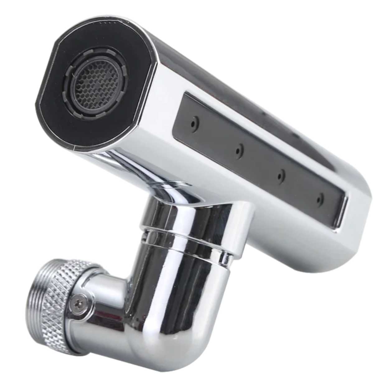 Kranmunstycke adapter för kökskran som ger fyra valbara vattenlägen, inklusive vattenfallsläge för bred och snabb sköljning. Den 360° roterbara konstruktionen gör det enkelt att rikta strålen och byta läge vid disk, rengöring av kärl eller sköljning av frukt och grönsaker. Munstycket monteras utan verktyg och är utformat för att passa många vanliga kökskranar. Tillverkat i ABS-plast för låg vikt och tålig vardagsanvändning.