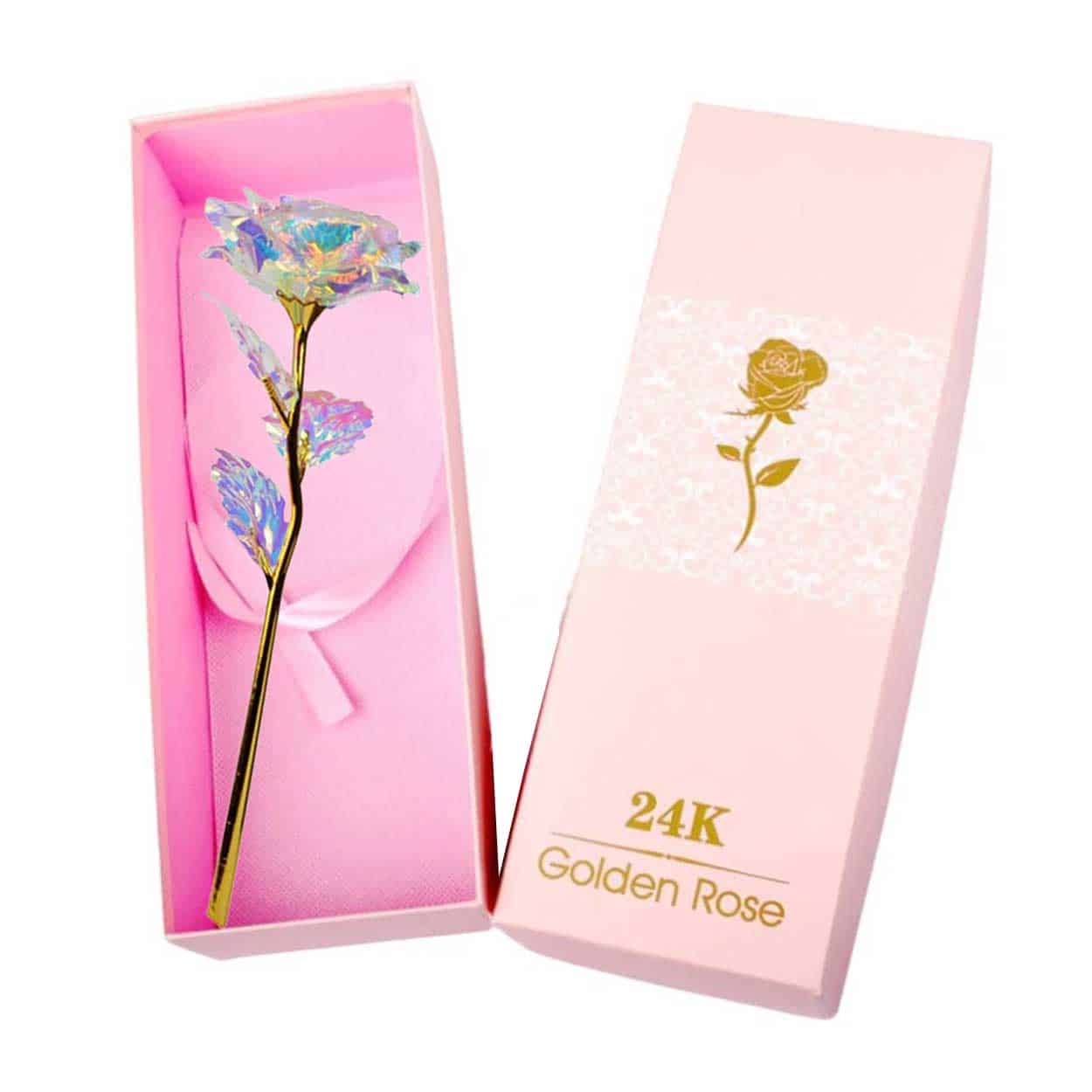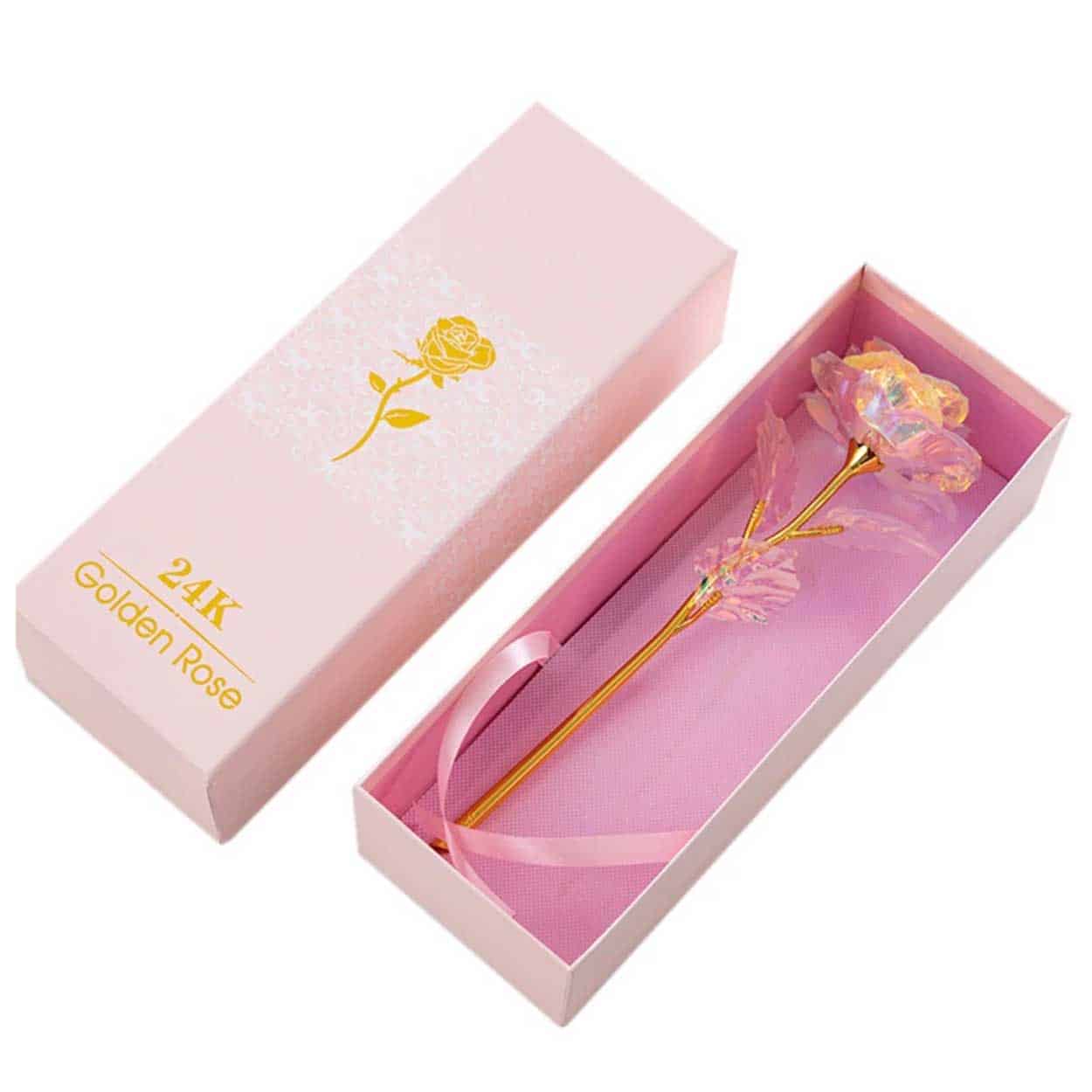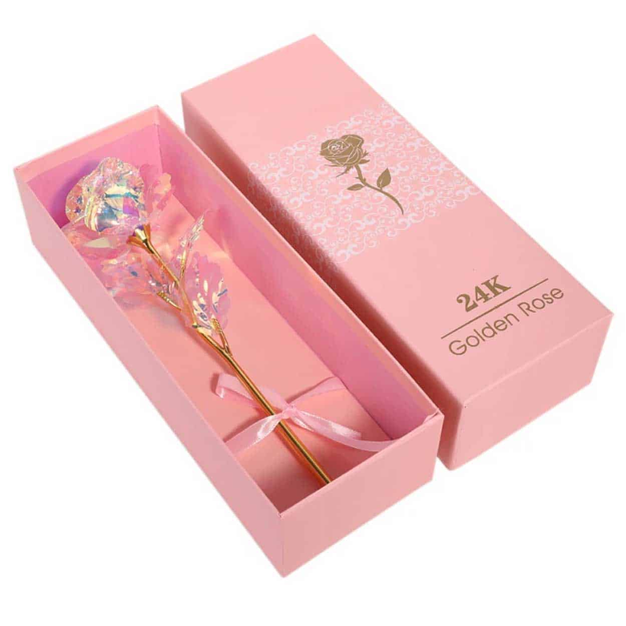 Guldpläterad ros / diamantros – presentgåva – 24 karat guldplätering, certifikat