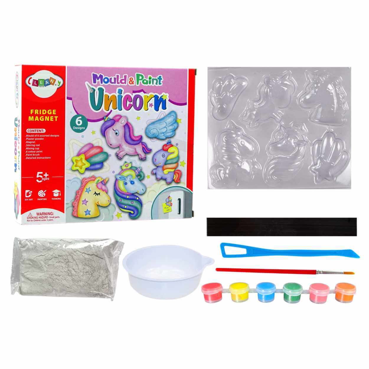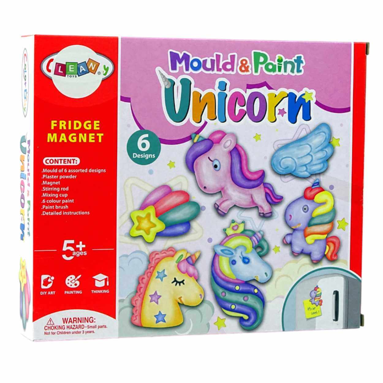 DIY magneter / gips pyssel – måla enhörningar – 6 formar, 6 färger, CE, EN71