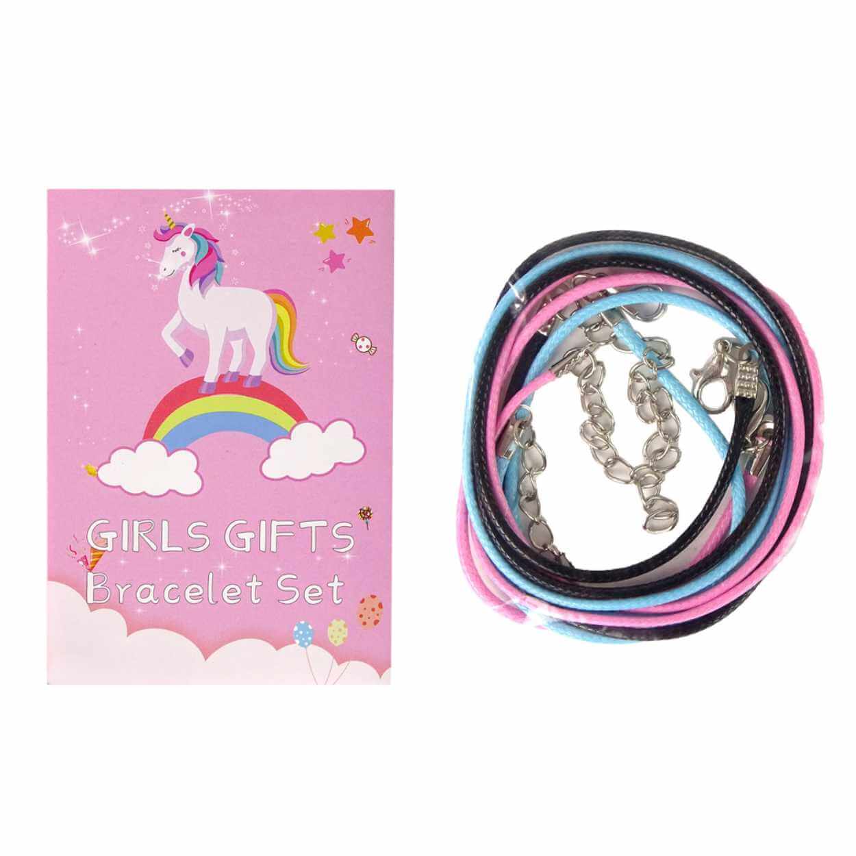 Enhörning armbandskit / smyckeskit – skapa armband – 3 armband, 9 trådar, berlocker