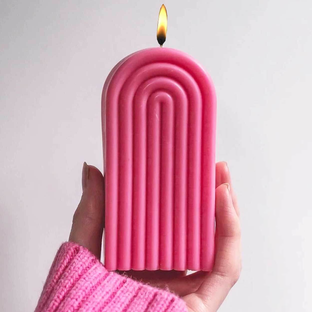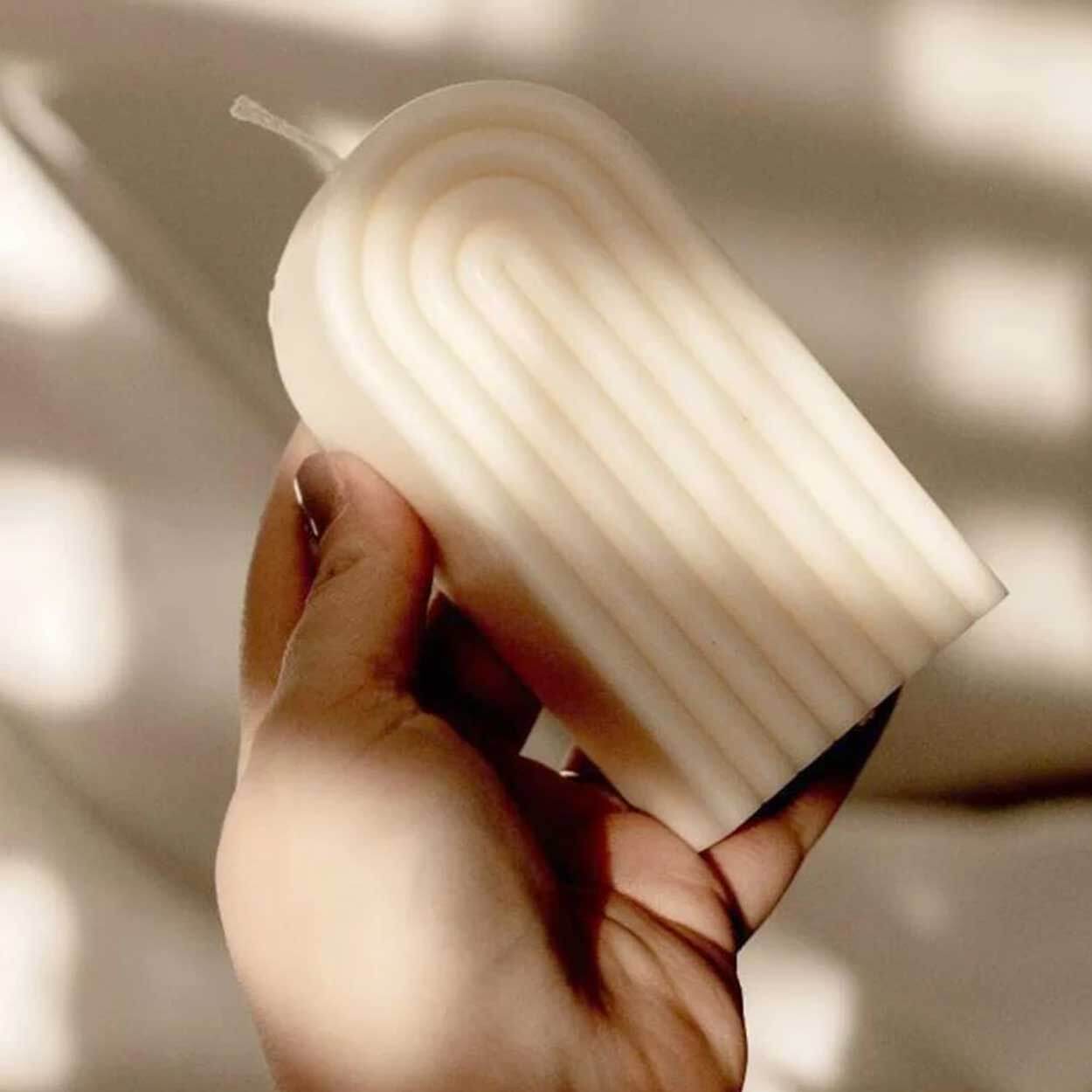 Silikonform för att stöpa stearinljus i en hög U-formad båge. Formen fungerar även för tvål, betonggjutning samt choklad och bakverk tack vare livsmedelsklassad silikon. Materialet är flexibelt, vilket gör det lätt att lossa det färdiga föremålet utan att skada kanter och detaljer. Formen är återanvändbar och kan diskas i maskin för smidig rengöring mellan gjutningar. Temperaturtålighet från -60 till 240 °C gör den användbar både i frys och vid varmare massor.