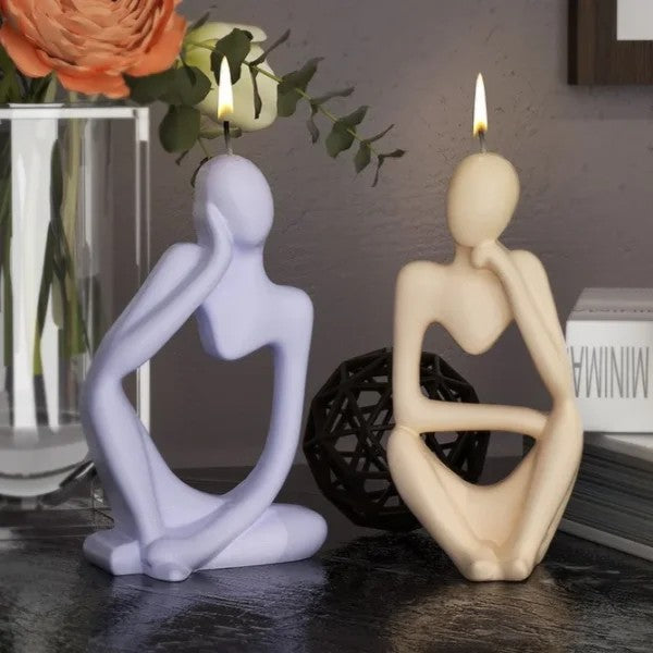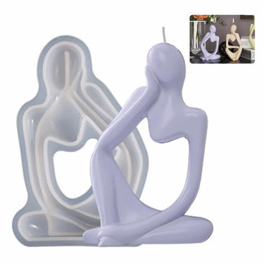 Silikonform för att gjuta stearinljus i modellen Vilande tänkare. Formen fungerar även för tvål, betong, choklad och enklare bakverk tack vare livsmedelsklassad silikon. Den flexibla konstruktionen gör det lätt att lossa det färdiga föremålet utan att detaljer går sönder. Formen är återanvändbar och kan diskas i maskin, vilket förenklar rengöring mellan gjutningar. Temperaturtålighet från -60 till +240 °C gör den användbar både för kalla och varma moment, exempelvis när smält stearin hälls i och får stelna.
