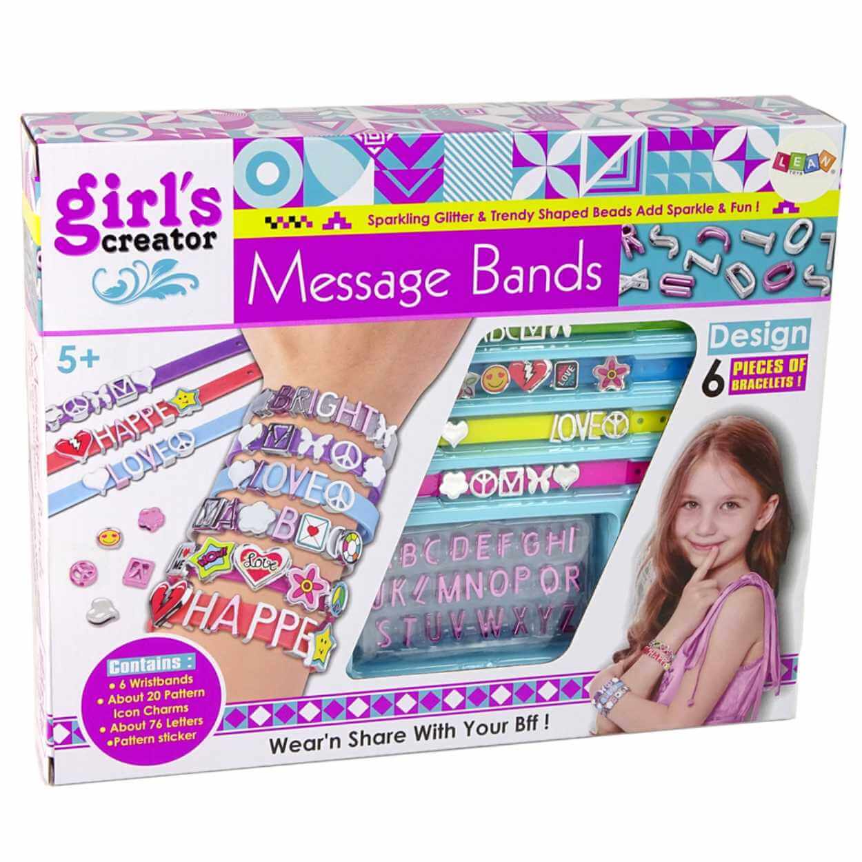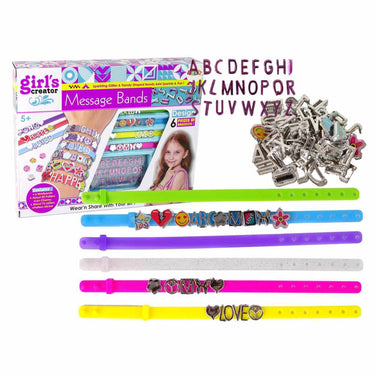 Smyckesset för barn som vill skapa egna namnarmband och personliga armband. Kitet innehåller bokstavspärlor från A till Z samt pärlor i olika former som gör det enkelt att bygga mönster och kombinera uttryck. Sex armbandsremmar med snäppstängning ingår, så flera armband kan göras och bytas ut. Pysslet tränar finmotorik och hjälper barnet att utveckla sin känsla för form och färg genom praktiskt skapande. Rekommenderas från 5 år på grund av små delar.