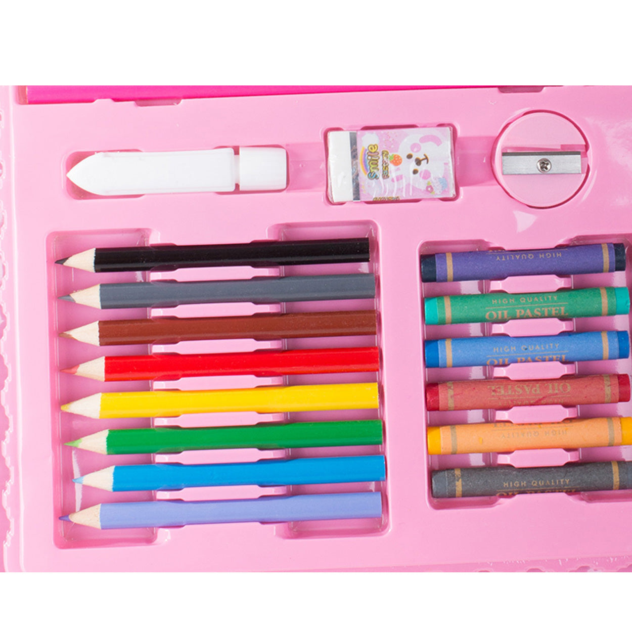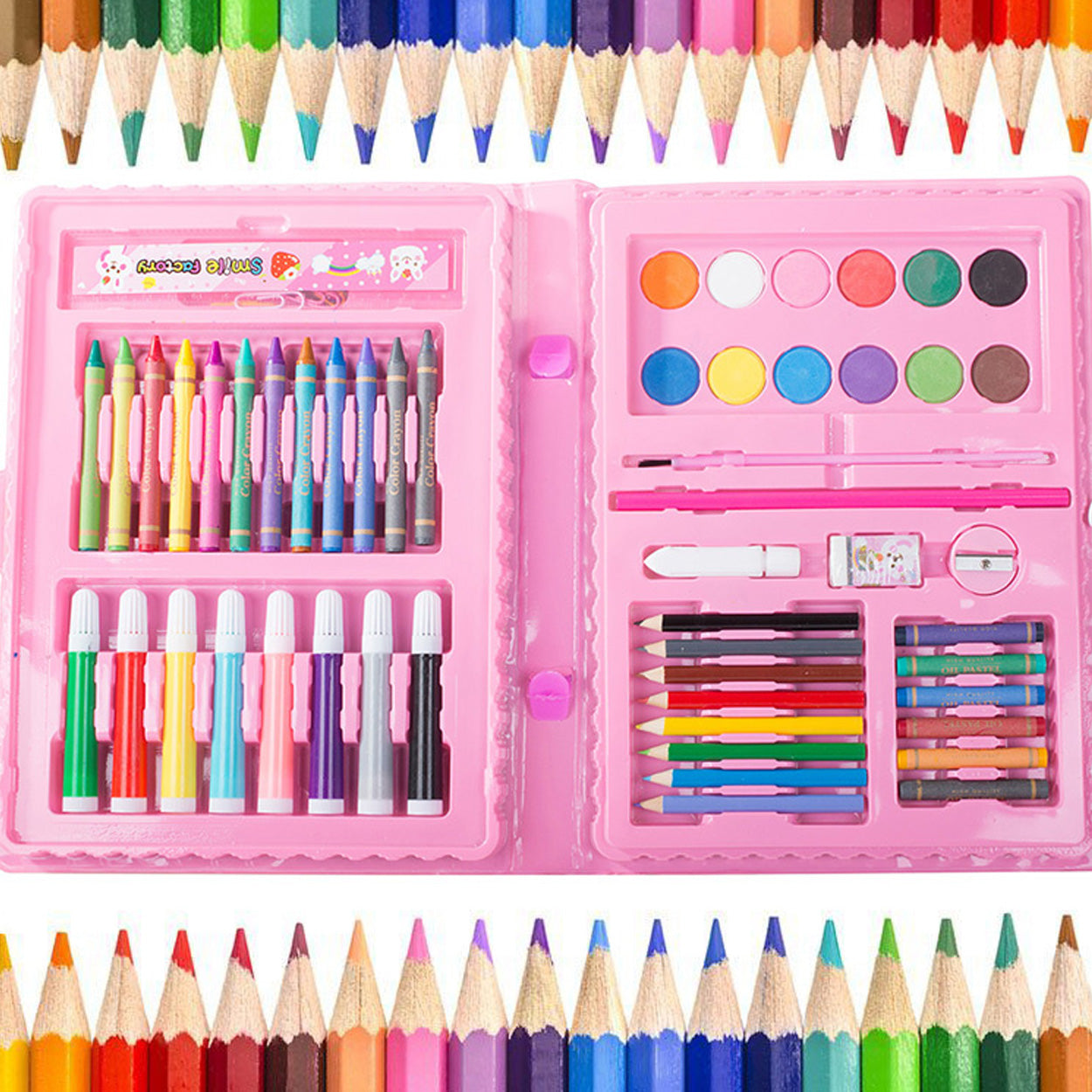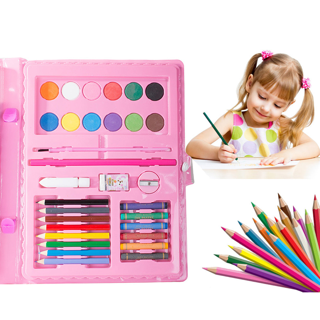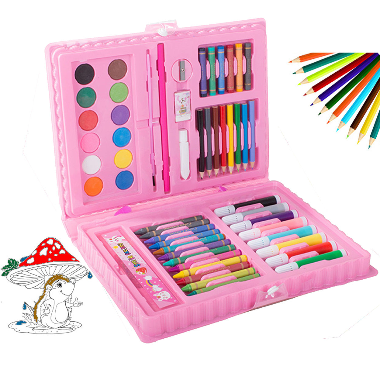 Målarset med 68 delar i en kompakt väska som gör det enkelt att skapa både hemma och på språng. Innehållet ger ett bra spann för skiss, färgläggning och enklare måleri, med flera typer av pennor och tillbehör som hjälper dig att komma igång direkt. Väskan håller ordning på delarna och gör setet smidigt att packa ner i ryggsäck eller låda. Passar för hobby, pyssel och övning, oavsett om du är nybörjare eller vill ha ett praktiskt kit som komplement.
