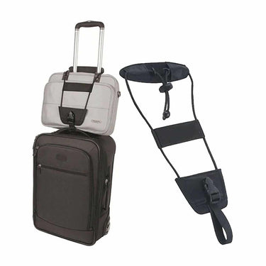 Väskhållare som gör det enkelt att fästa en mindre väska ovanpå en resväska. Passar för handbagage, datorväska och andra mindre väskor när du vill slippa bära flera kollin samtidigt. Hållaren kopplas snabbt på och av och ger en mer samlad packning vid förflyttning mellan incheckning, gate och transport. När den inte används tar den liten plats och kan förvaras i väskan utan att vara i vägen.